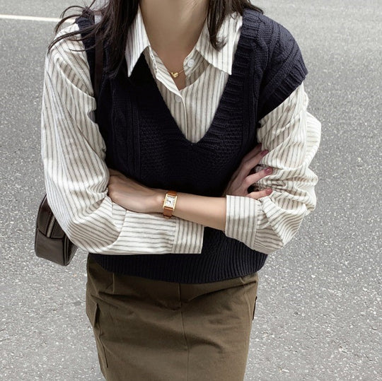 [98°C] Heather Stripe Cropped Shirt (3 Colours)