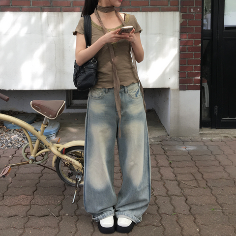 [anyonemore] Kez Vintage Washing Wide Denim Pants