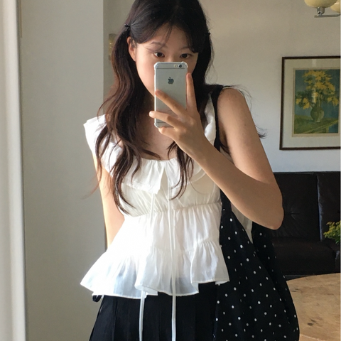 [anyonemore] Ribbon Strap Dff Sleeveless Blouse