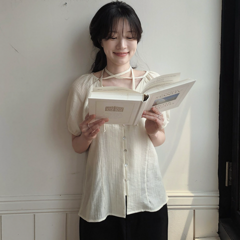 [anyonemore] Kaline Summer Ribbon Open Crop Blouse