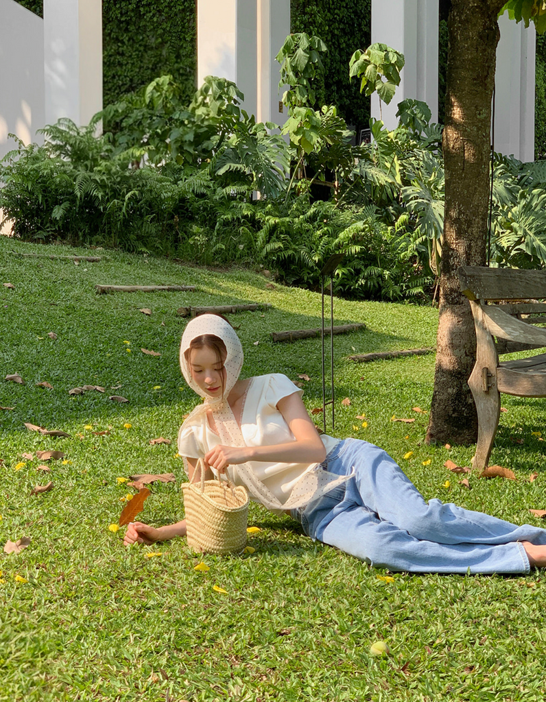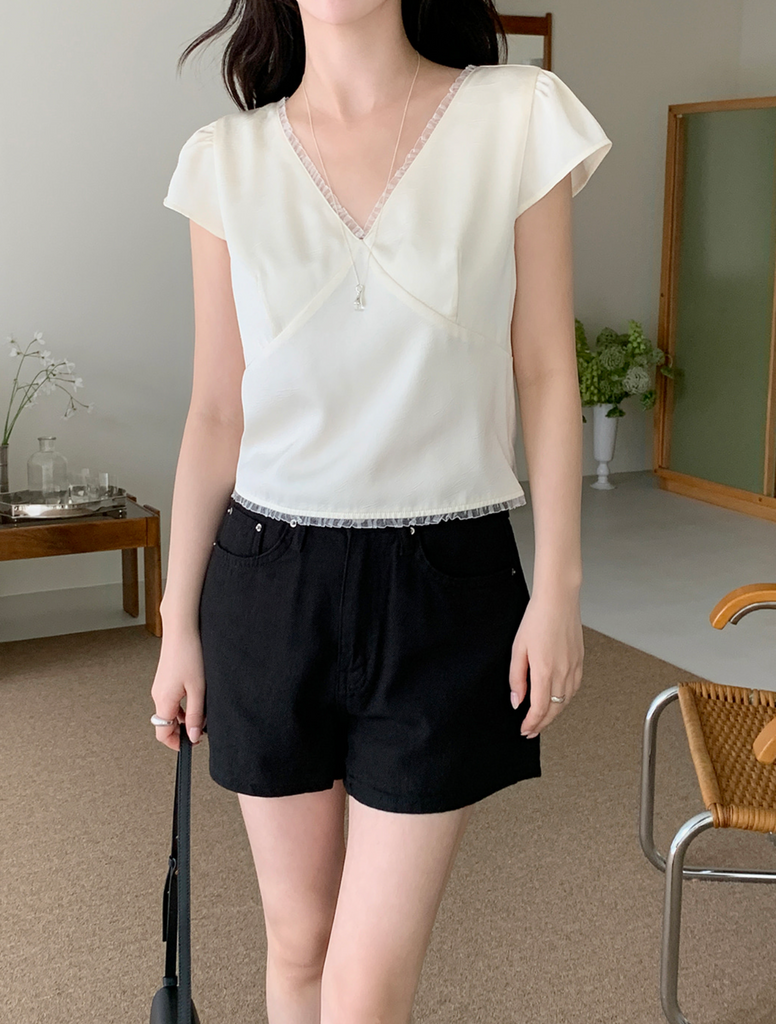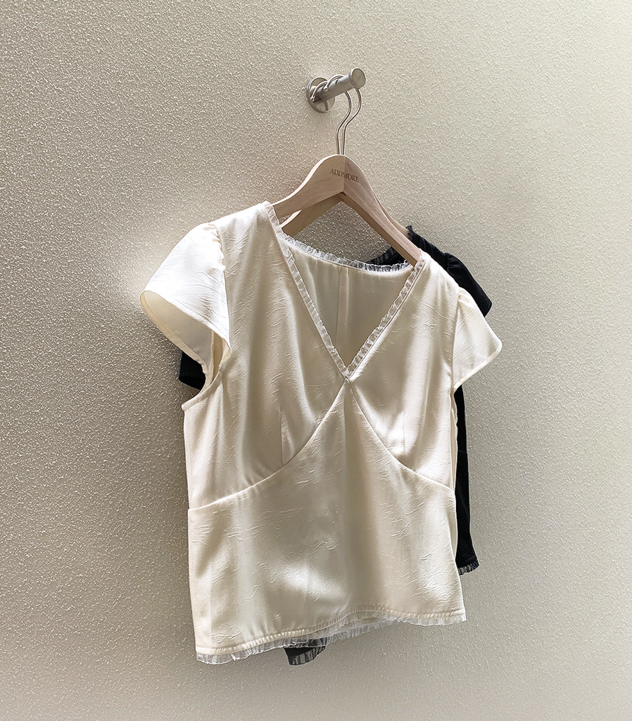 [ADDMORE] Glow Chiffon Lace Crop Blouse