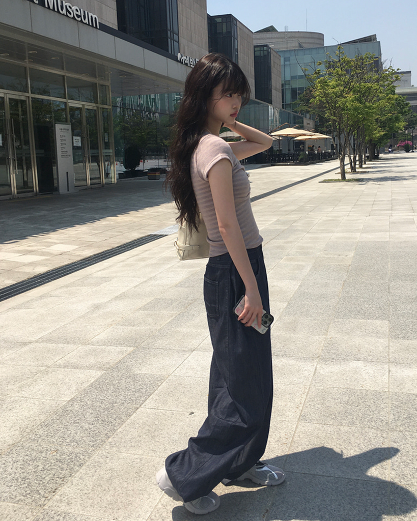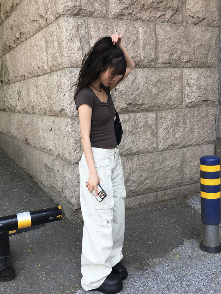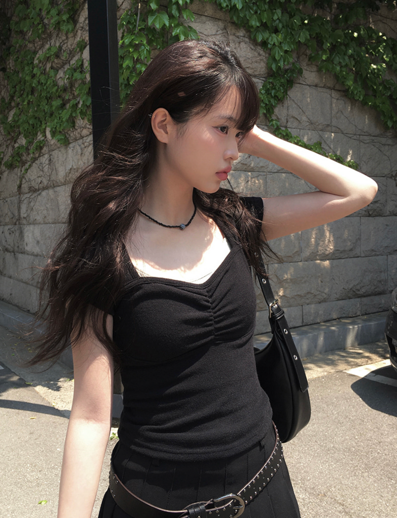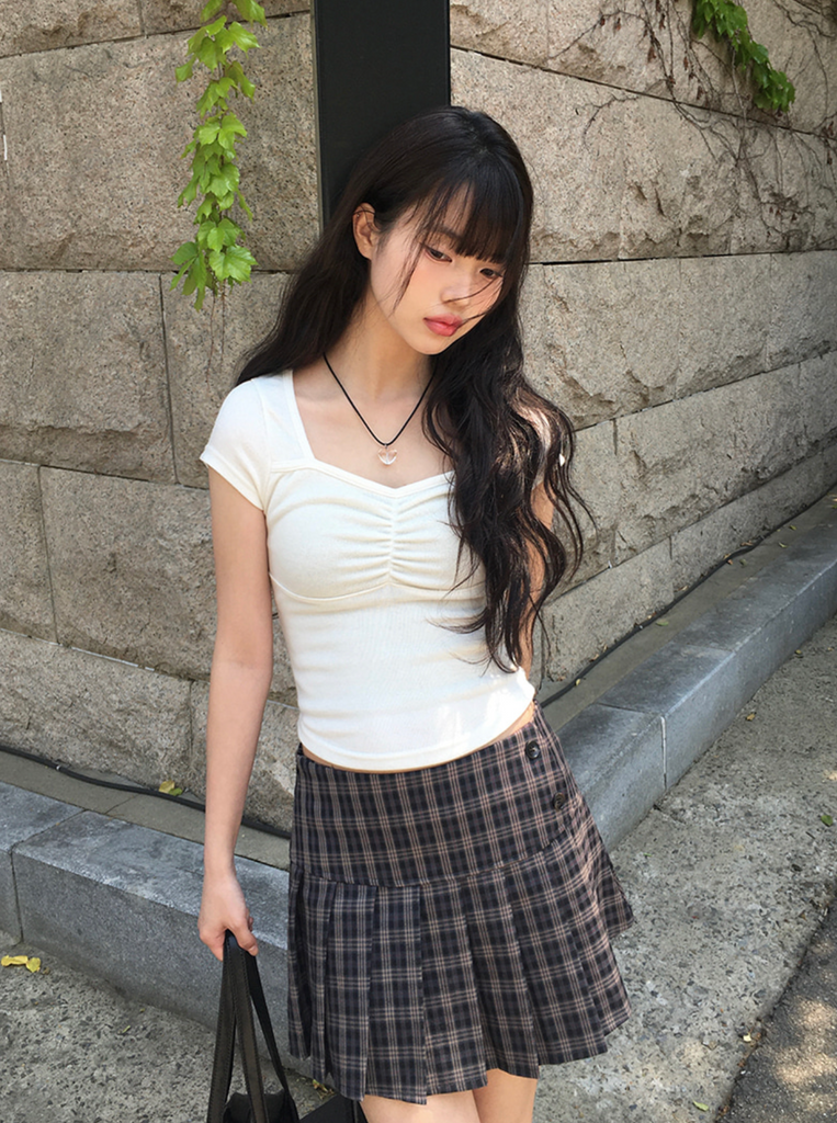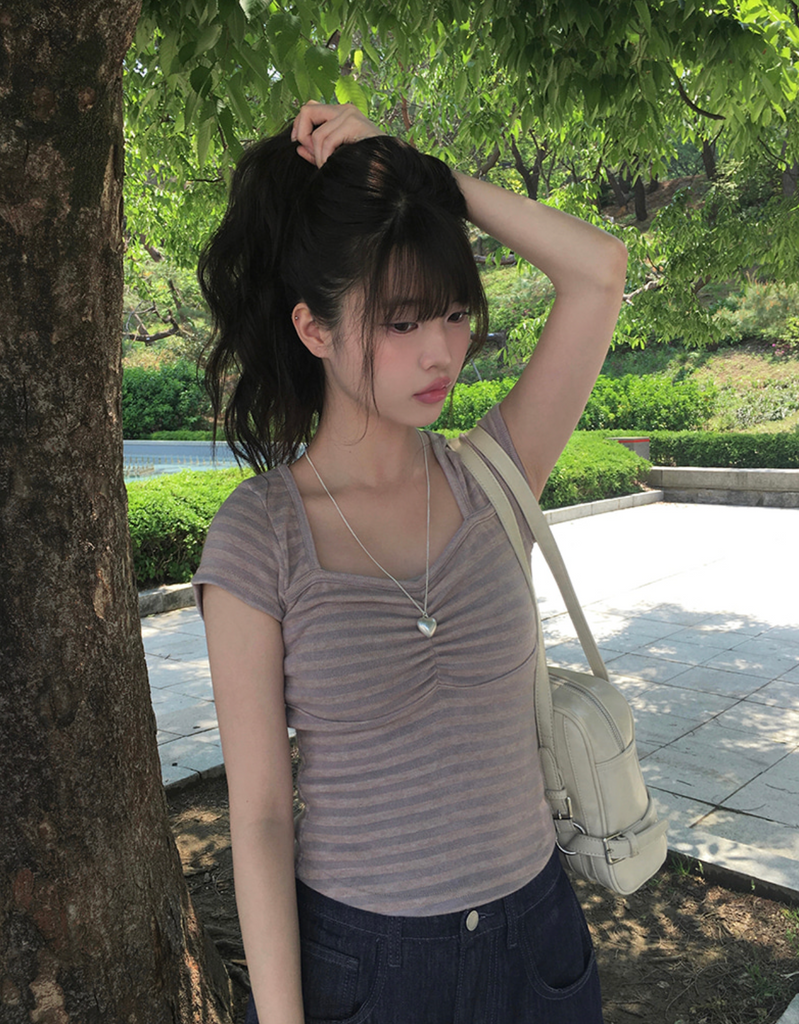 [anyonemore] Duran Amore Square Neck Shirring T-Shirt