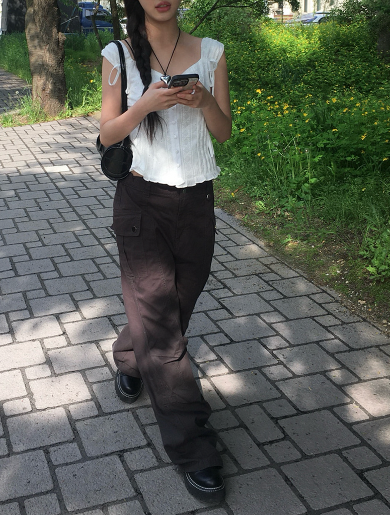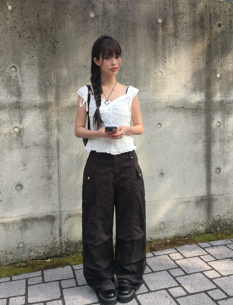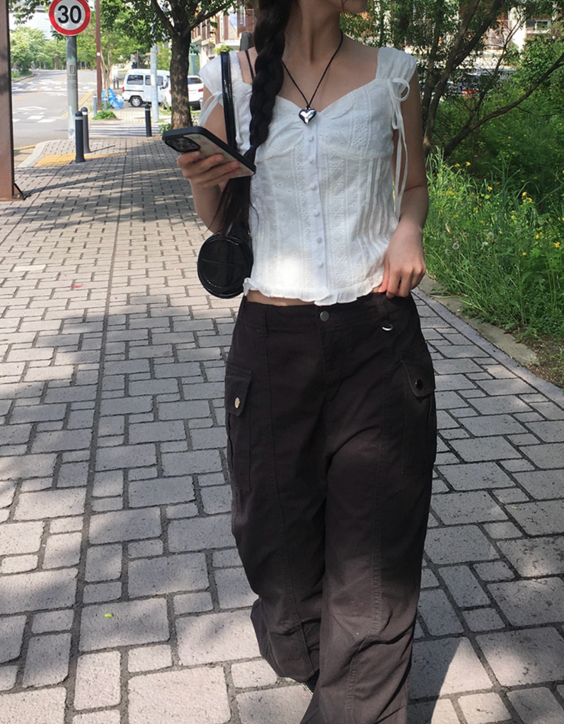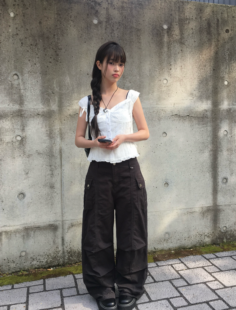 [anyonemore] Ribbon Strap Dff Sleeveless Blouse