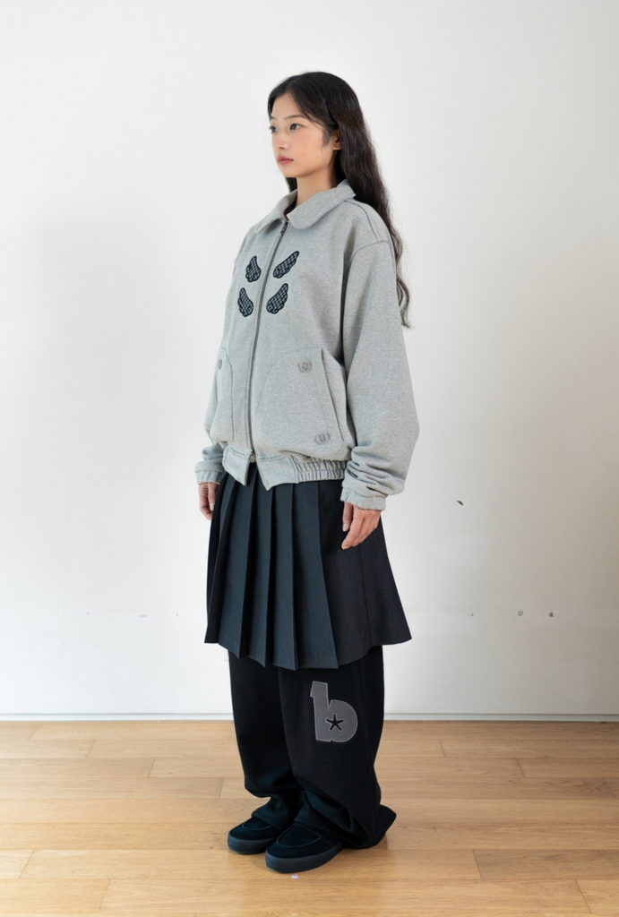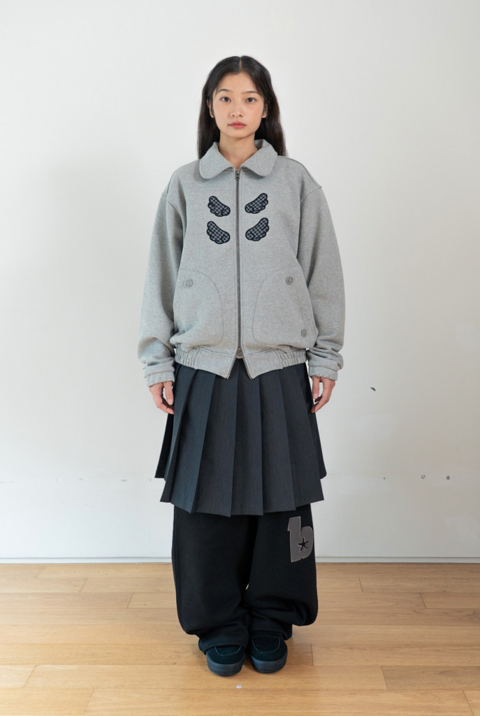 [BAUF] Angel Collar Zip-Up Jacket [Gray]