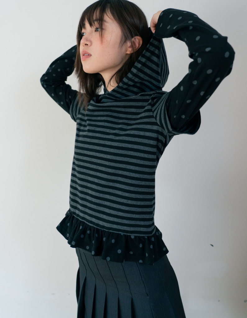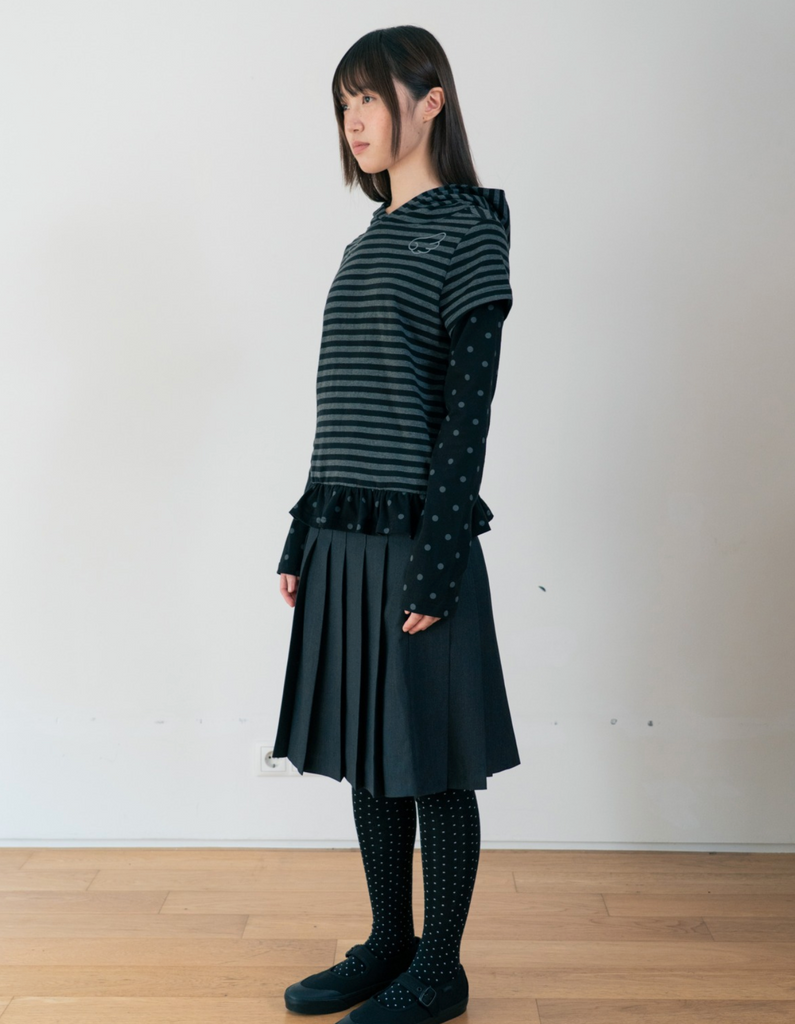 [BAUF] Angel Slim Fit Layered Hooded T-Shirt [Straight Black]