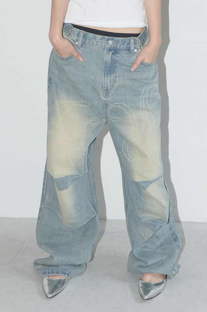 [FANCY CLUB] Angel Vintage Washing Pintuck Pants (BLUE)