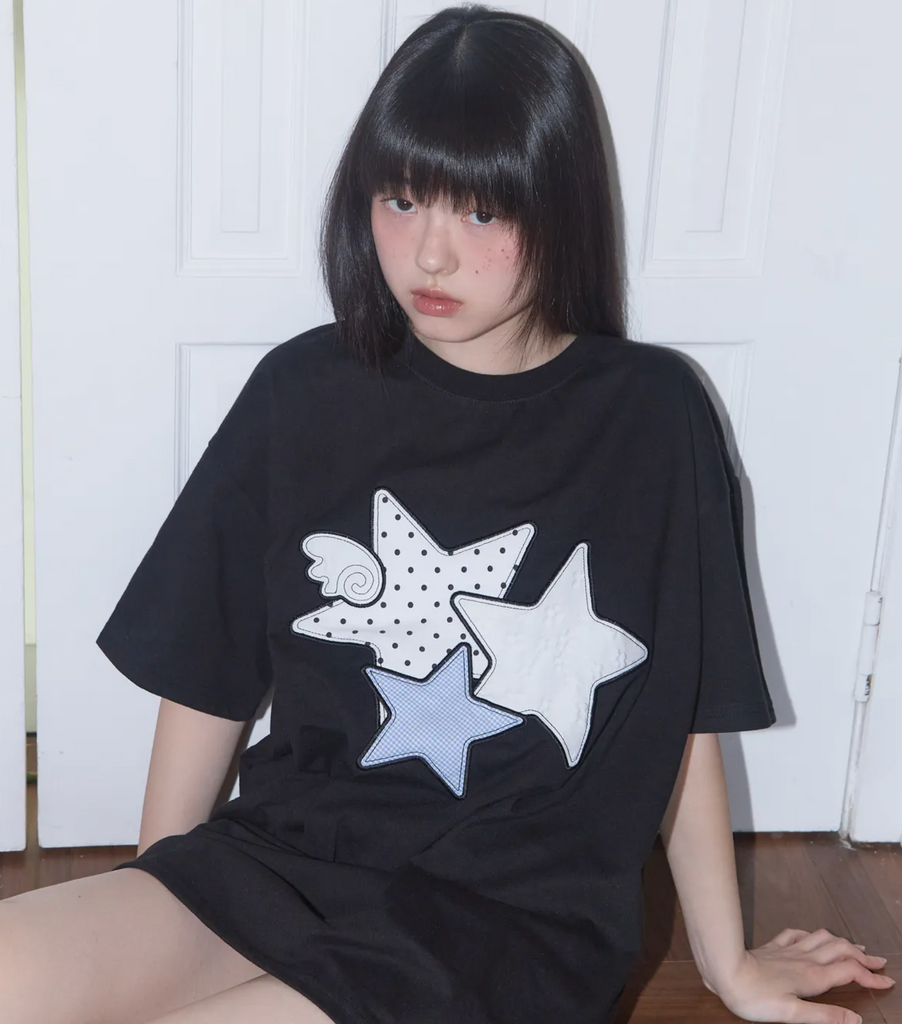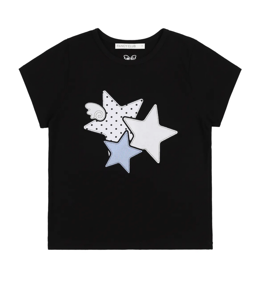 [FANCY CLUB] Mix Star Angel Patch Tee (Black)