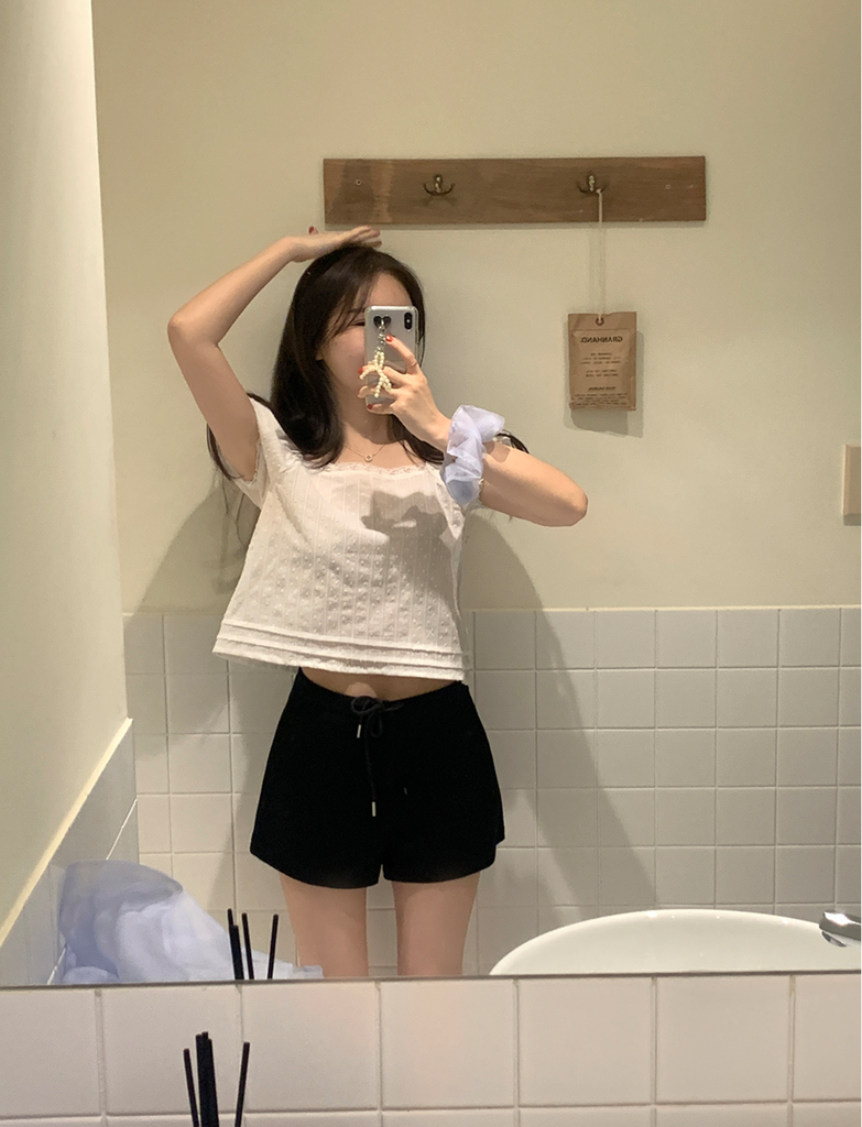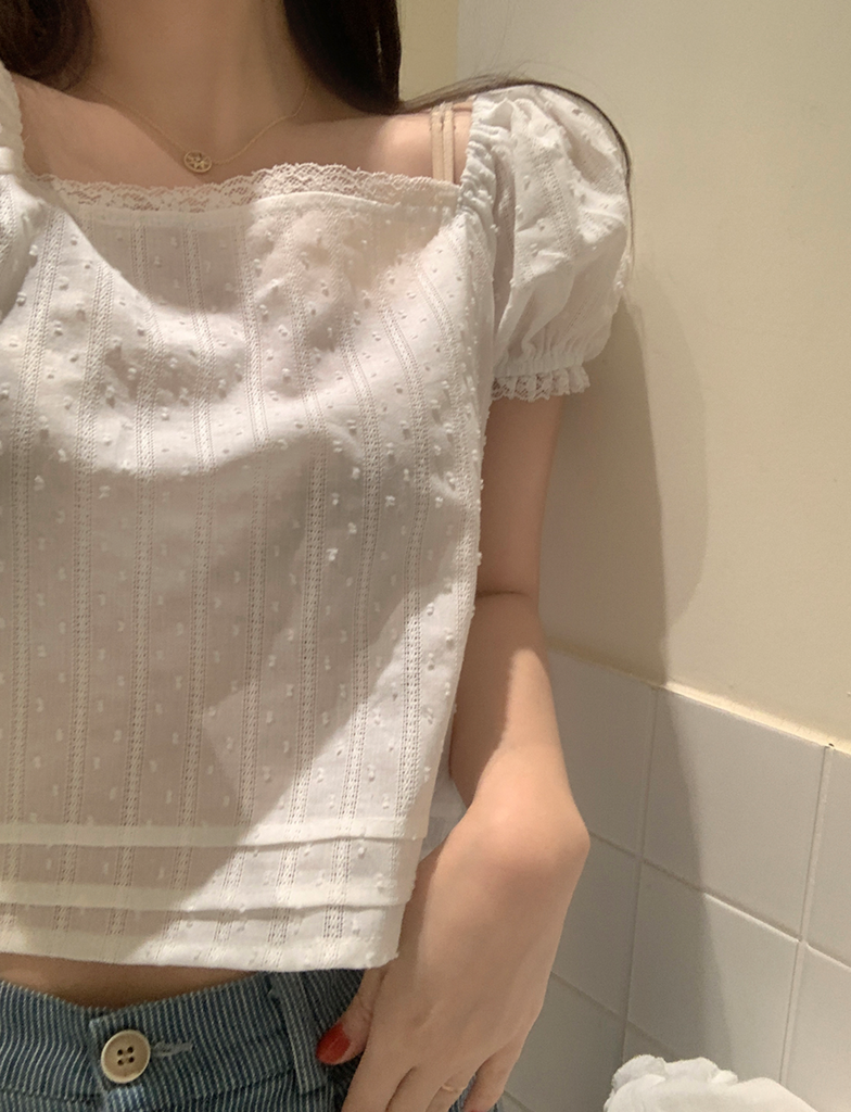 [GIRLS RECIPE] Off Square Short Sleeve Blouse