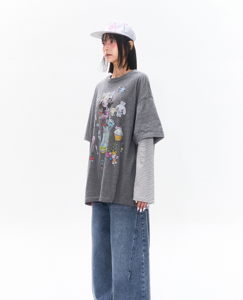 [KIRSH] x Sunonebird Oversize Graphic T-shirt (Melange Grey)