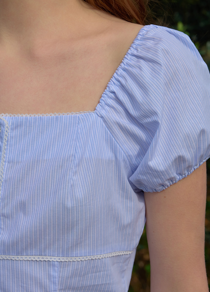 [Letter from Moon] Rosie Lace Puff Blouse (Stripe)