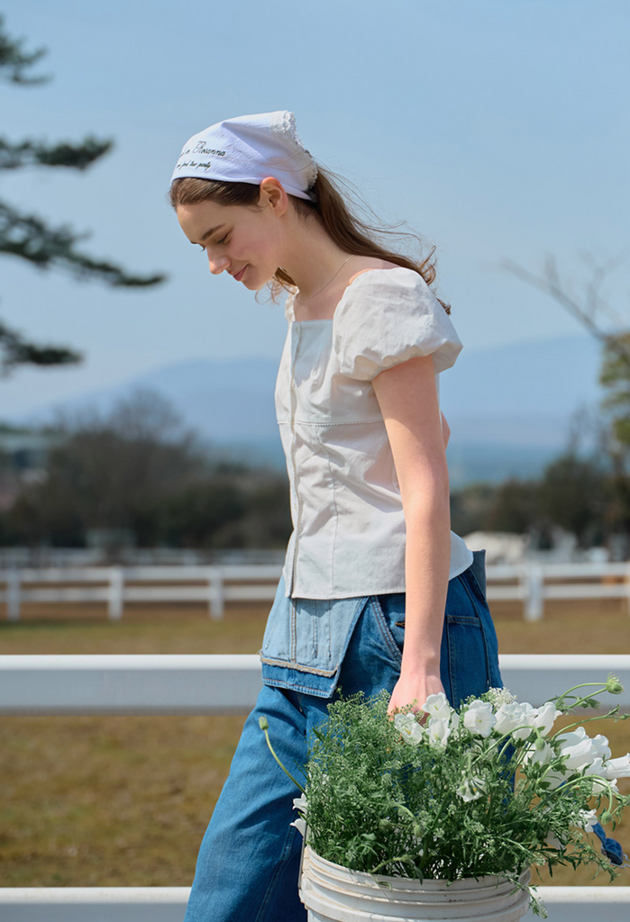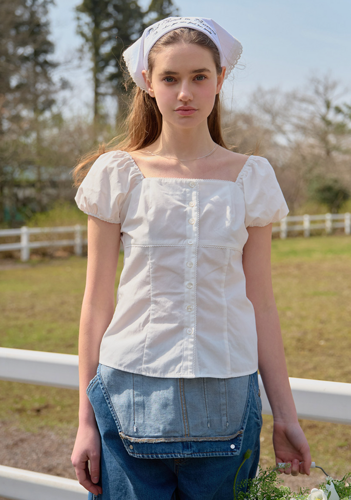 [Letter from Moon] Rosie Lace Puff Blouse (White)