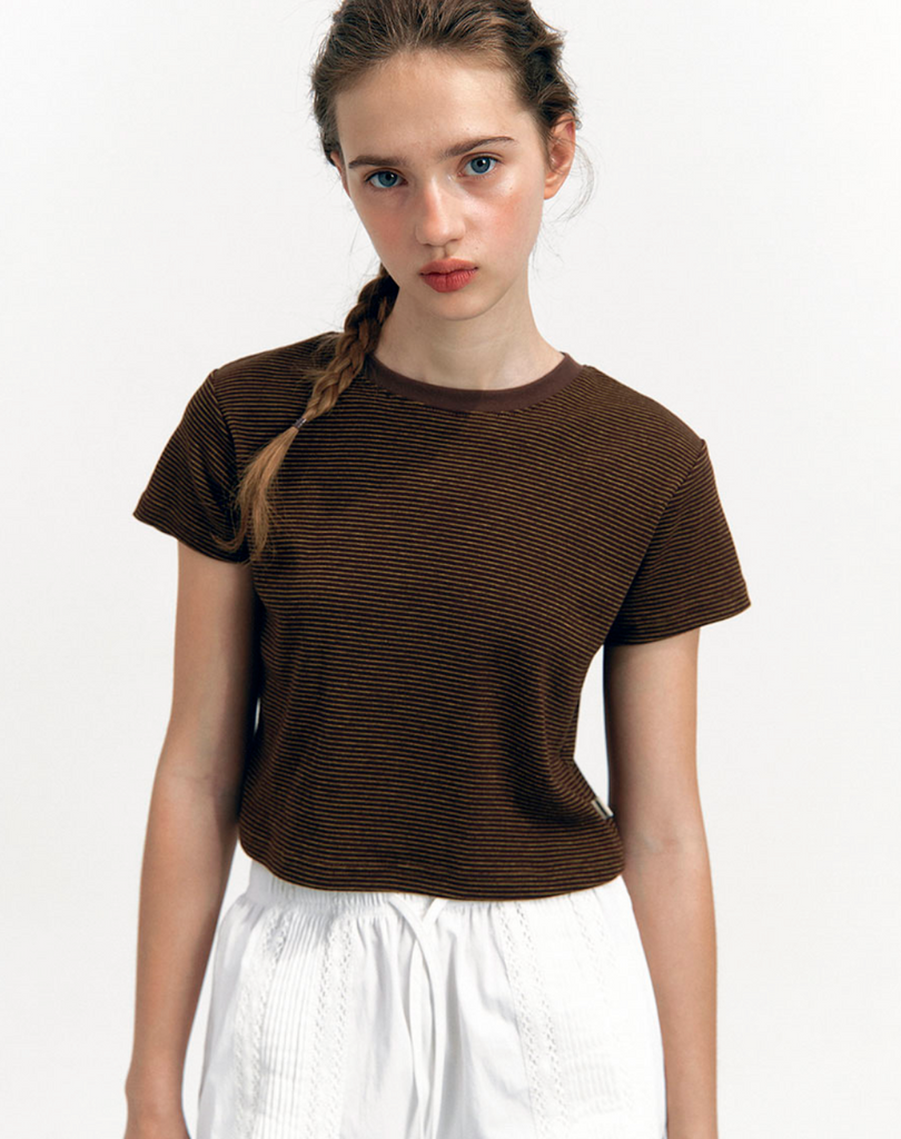 [NOIRNINE] Basic Stripe T-shirts [BROWN]