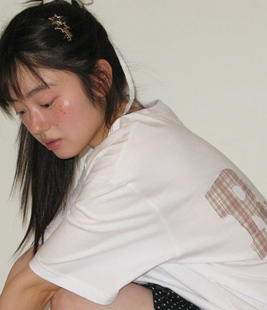 [RONRON] RON PATCH MIXED APPLIQUE OVER FIT T SHIRT WHITE