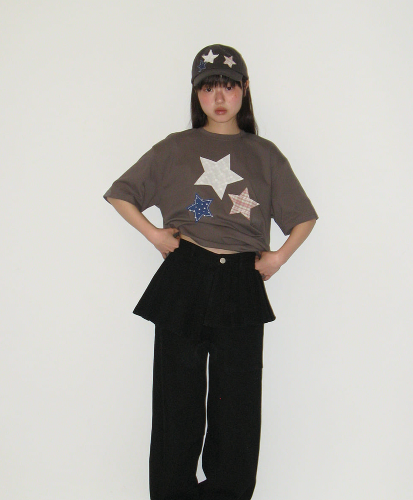 [RONRON] STAR PATCH MIXED APPLIQUE APPLIQUE T SHIRT CHARCOAL
