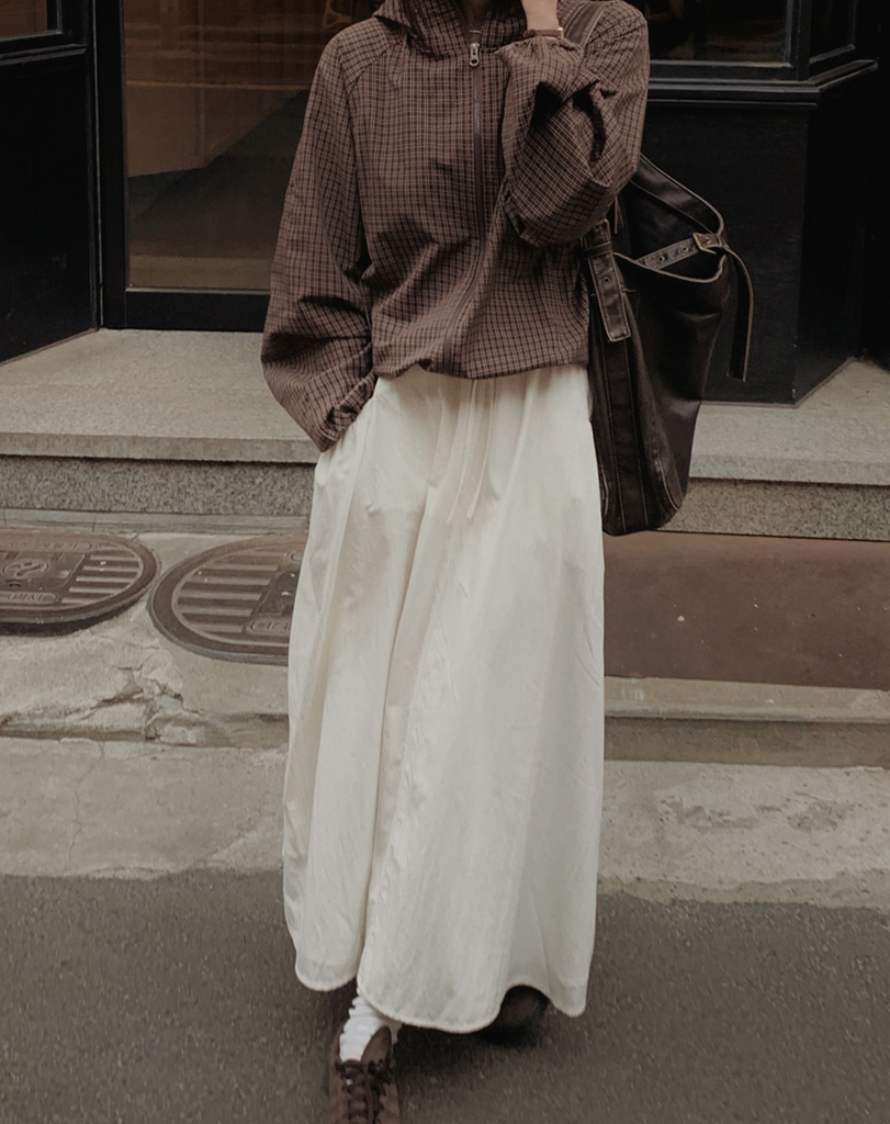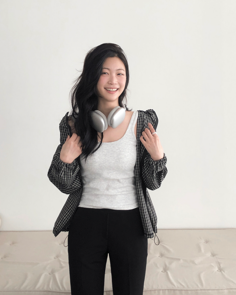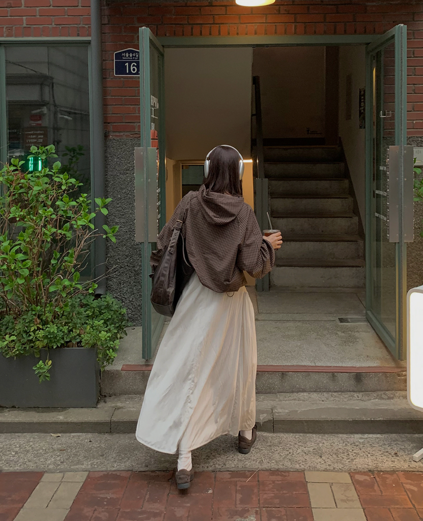 [SLOWAND] Dark Cozy Fine Checkered Hooded Jumper
