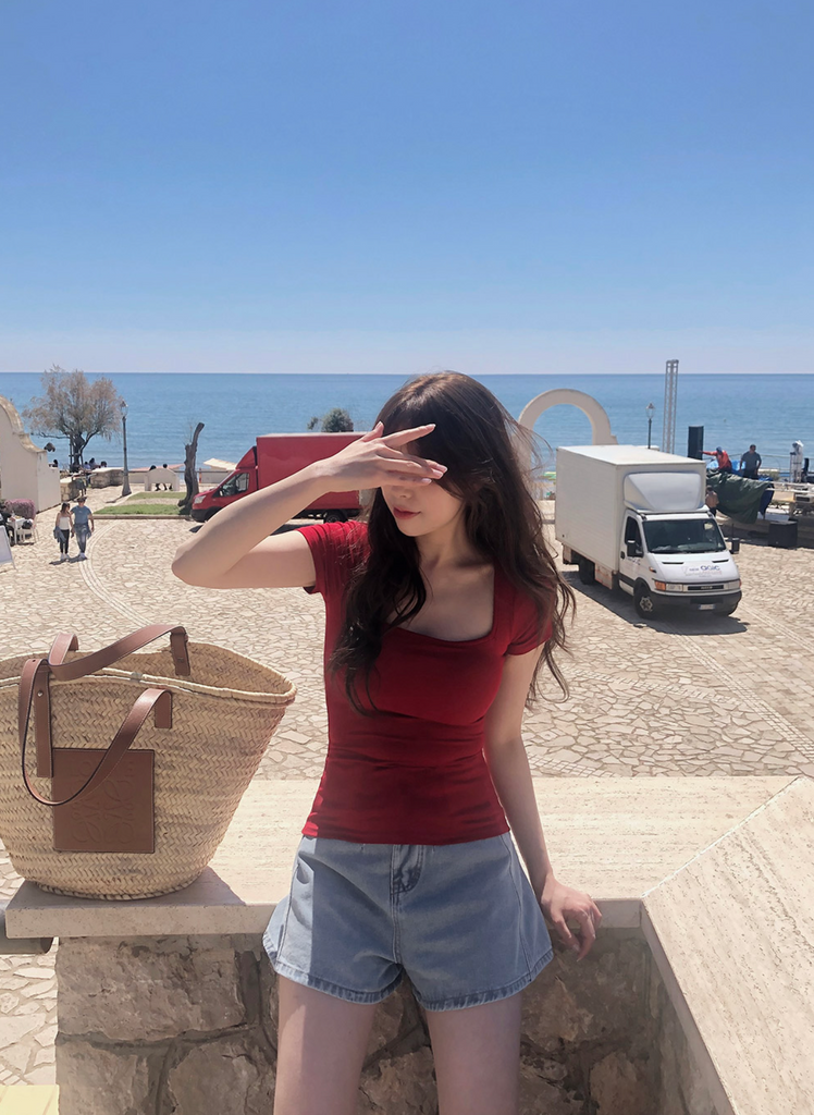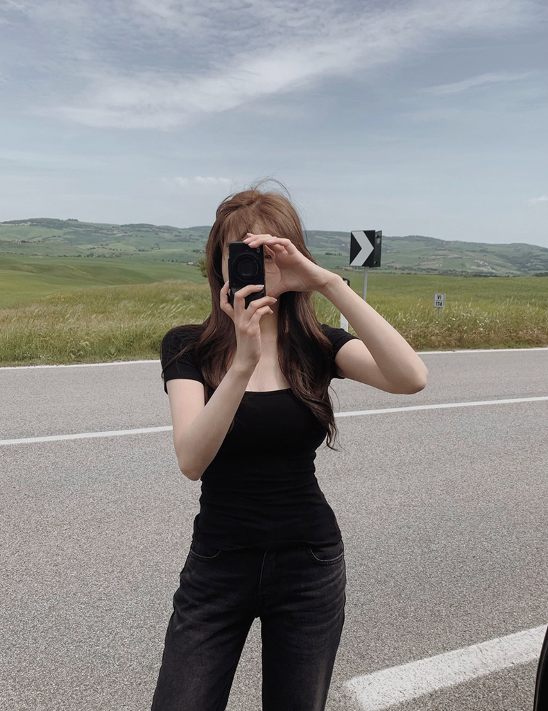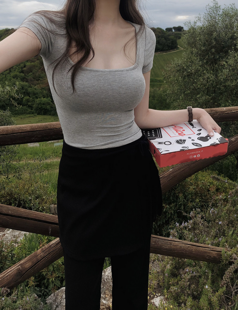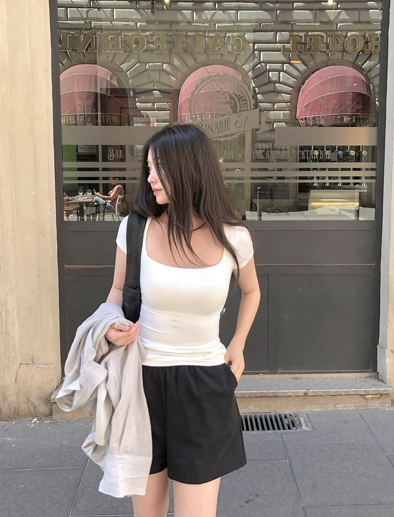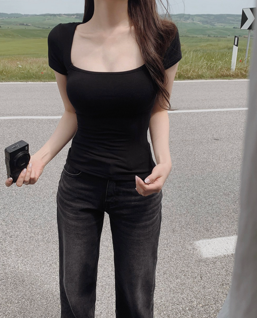 [SLOWAND] ONLY SLOW Inside Cap Square Neck T-shirt