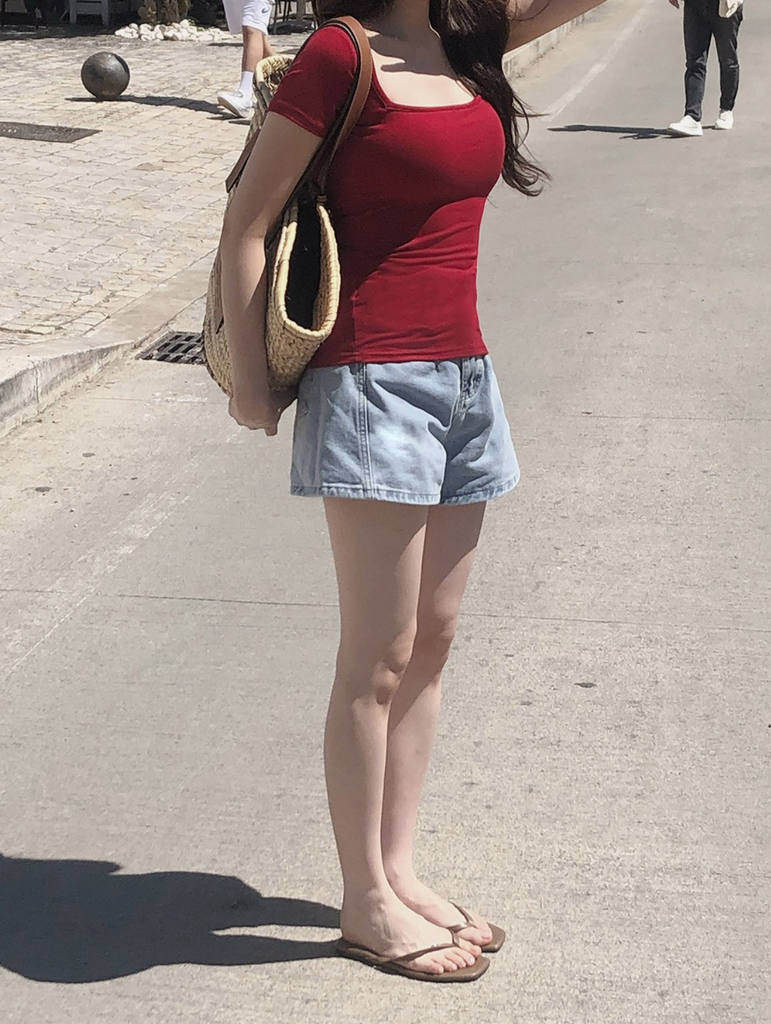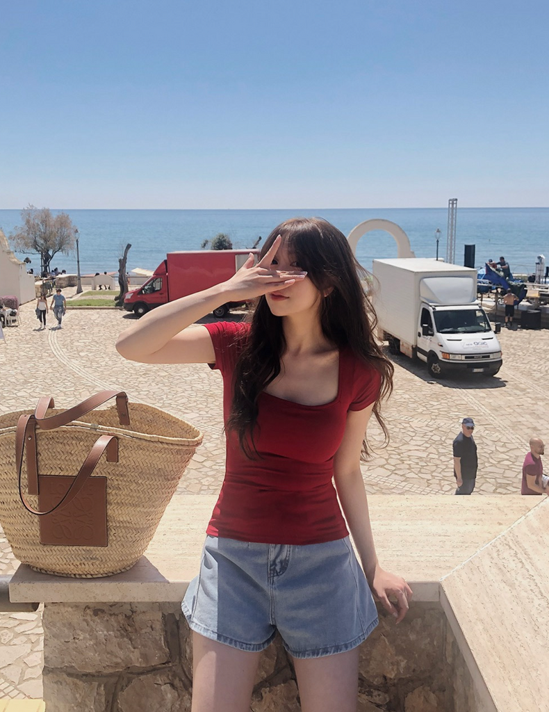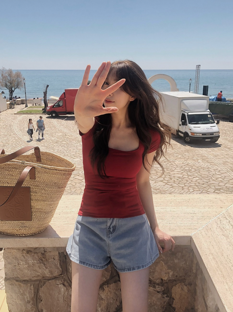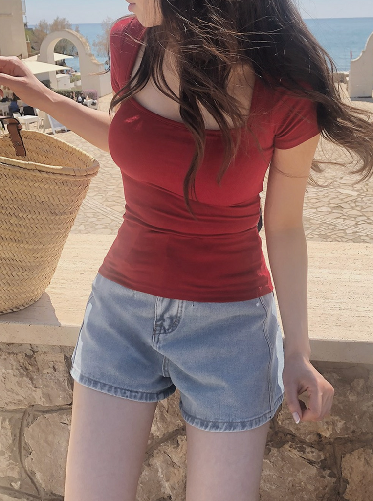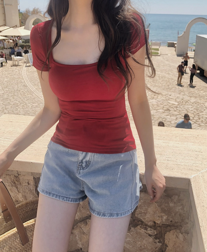 [SLOWAND] ONLY SLOW Inside Cap Square Neck T-shirt