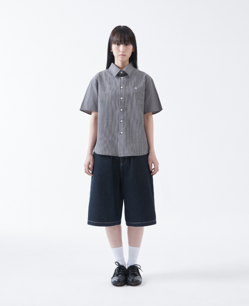 [THE COLDEST MOMENT] TCM Mini Logo Stripe Half Shirts (Black)