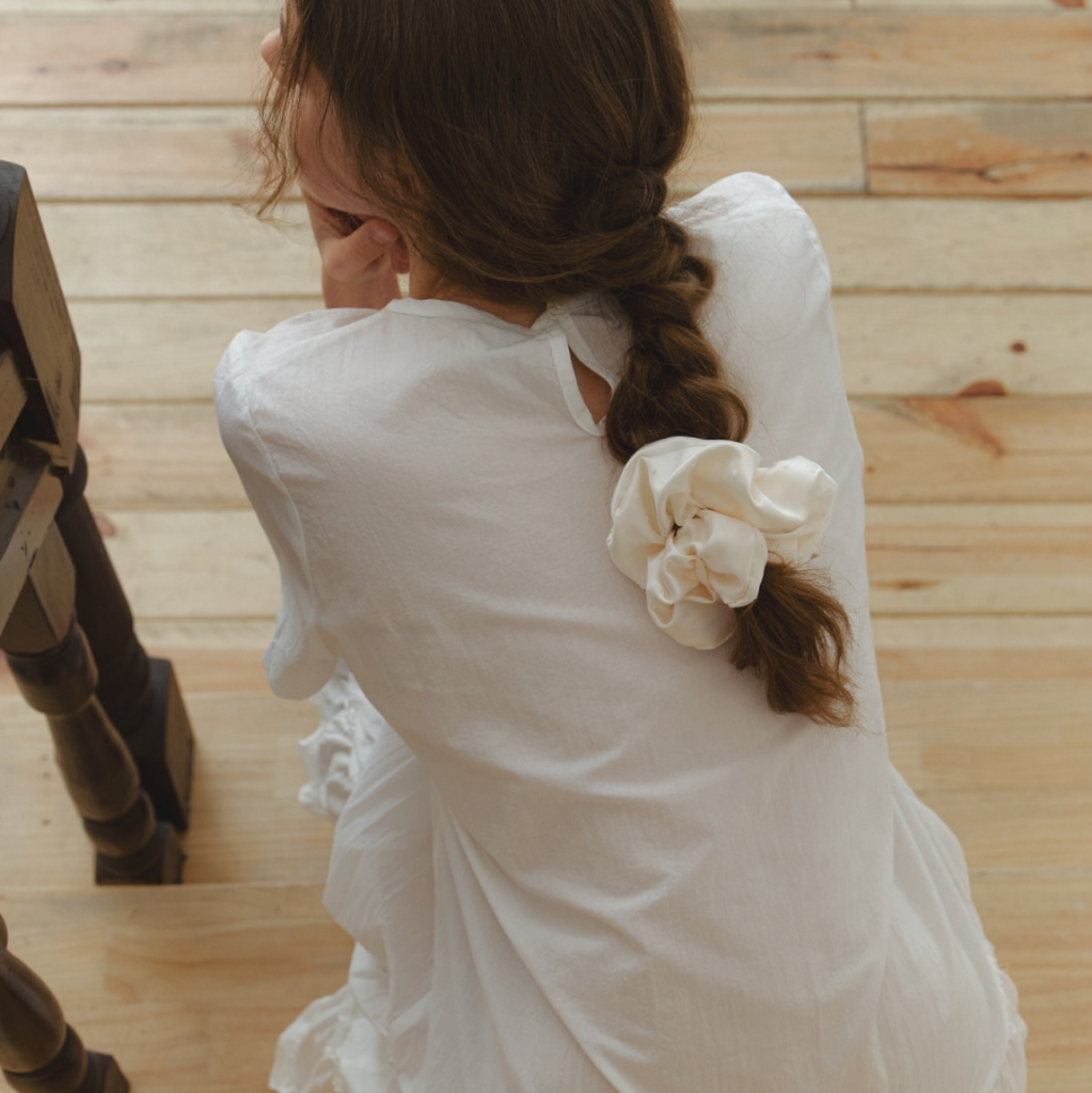 [DUNGEUREON] Dot Satin Scrunchie (Ivory)