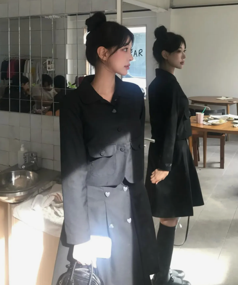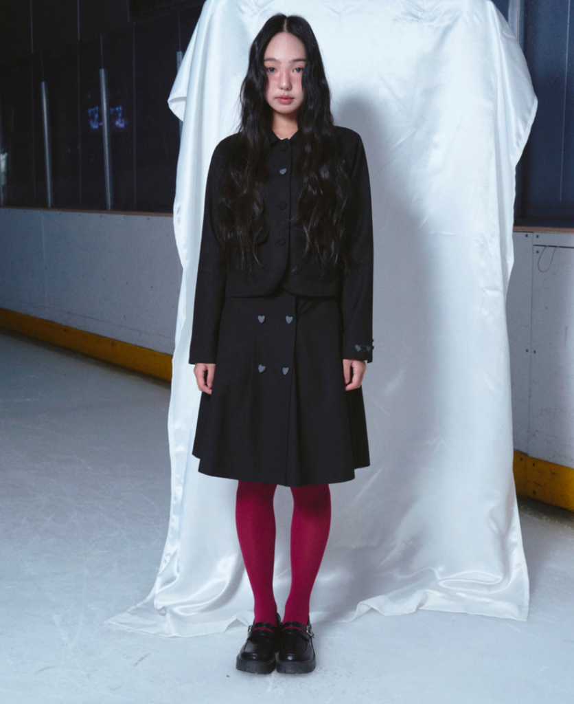 [ROGIN N ROSIE] [Set] Heart Botton Point Set-up Black