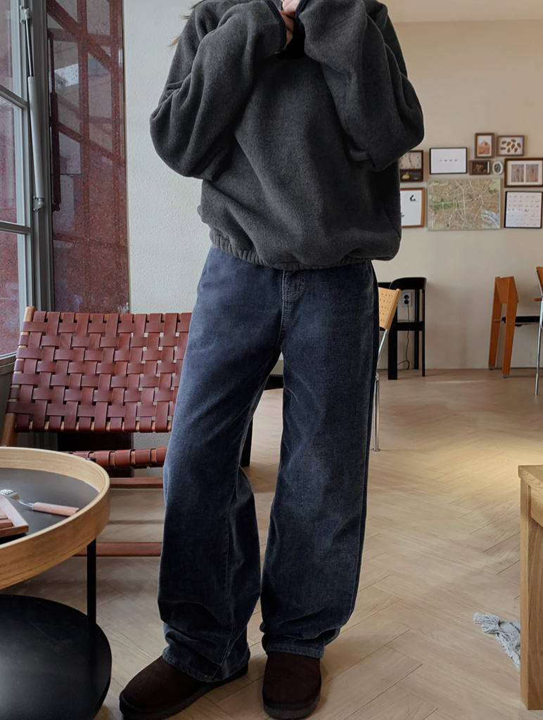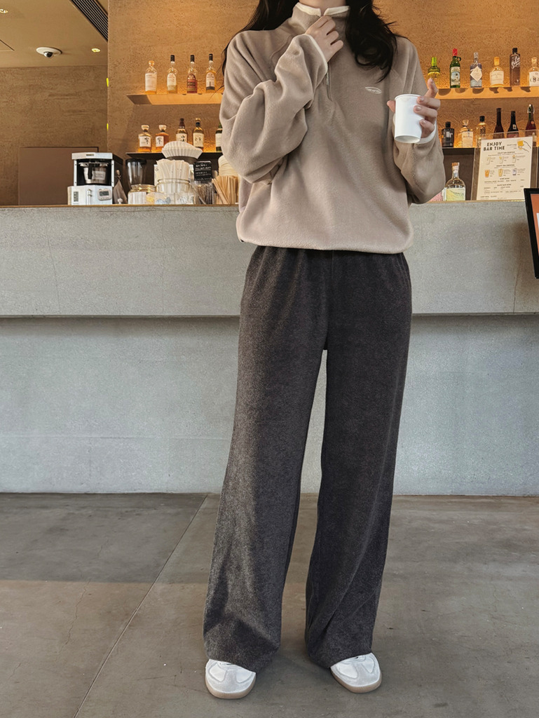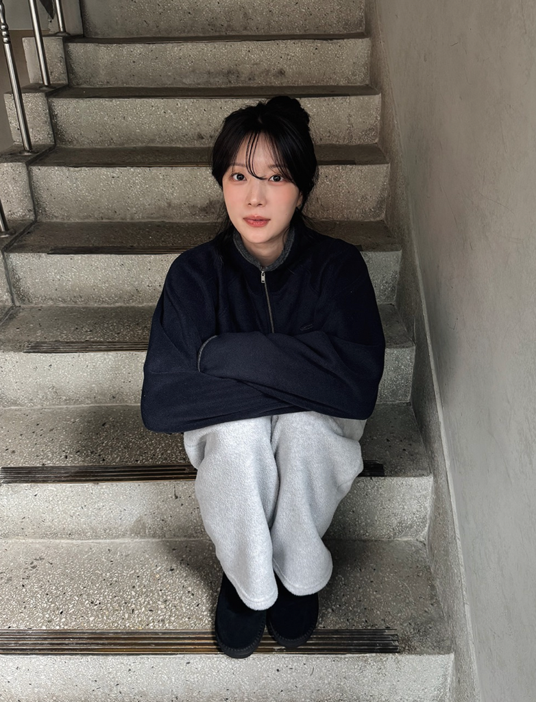 [SLOWAND] # SLOWMADE Memories Embroidery Coloring Fleece Semi-Zipup