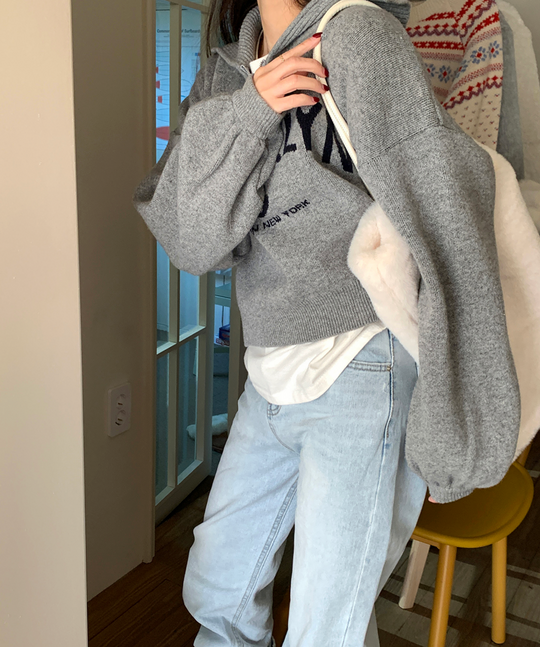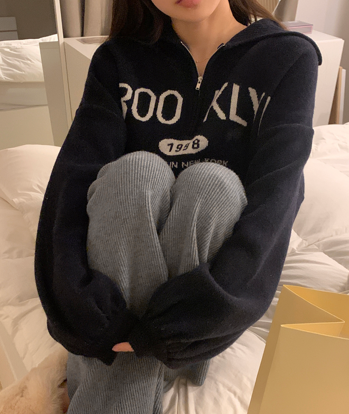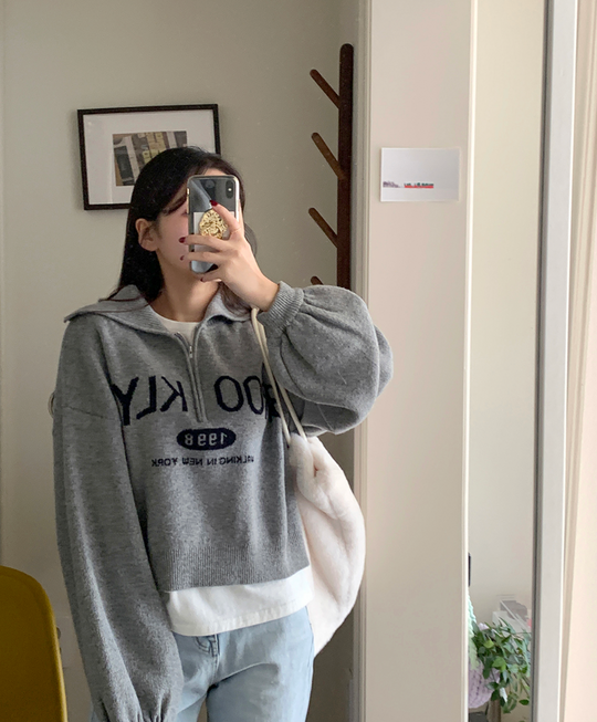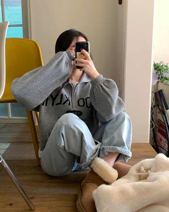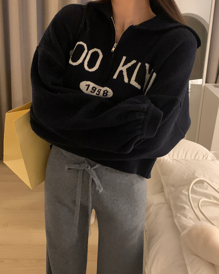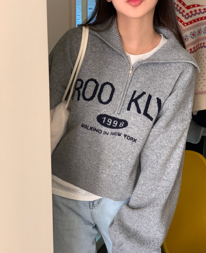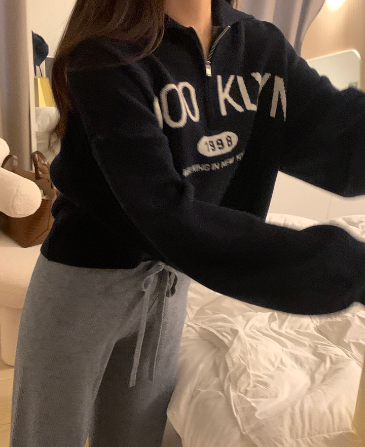 [GIRLS RECIPE] Brooklyn Vintage Half Zip-Up Knitwear Wool 45%