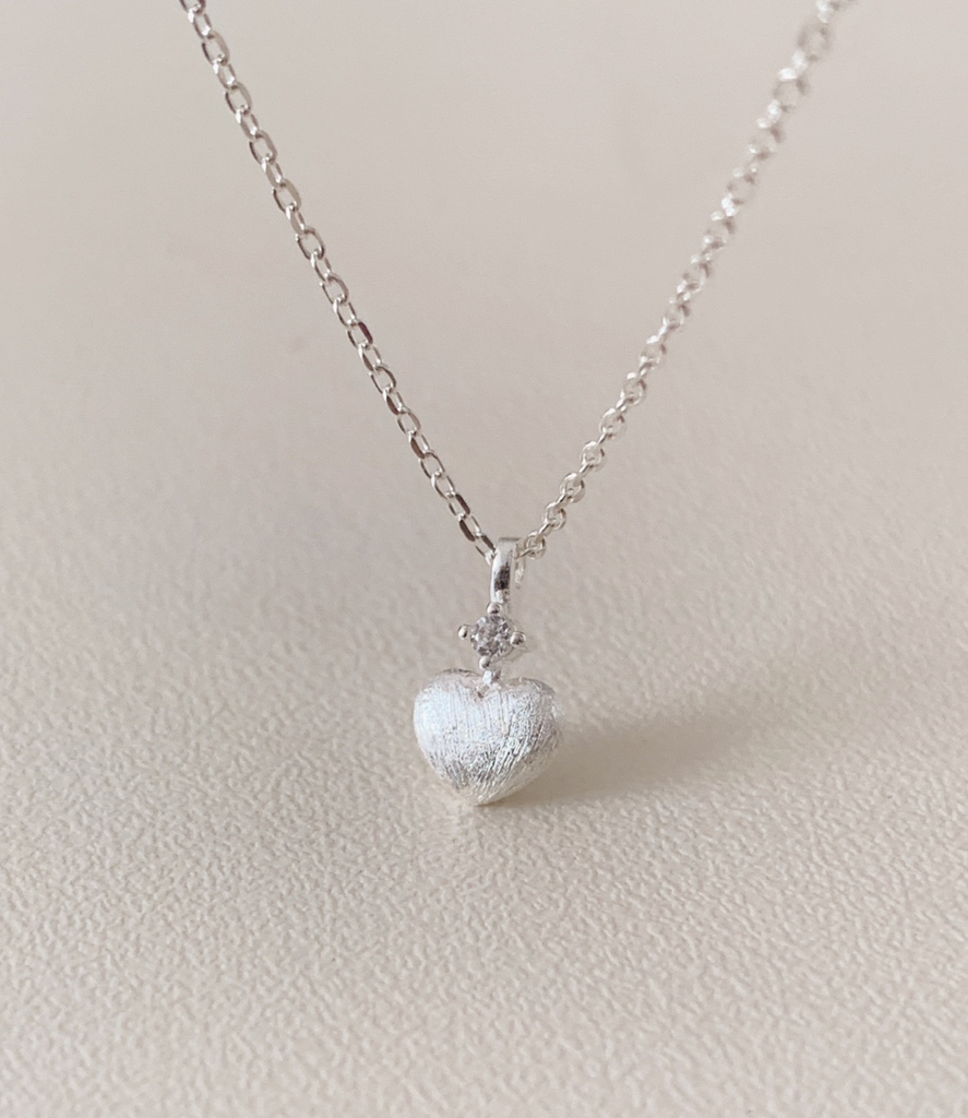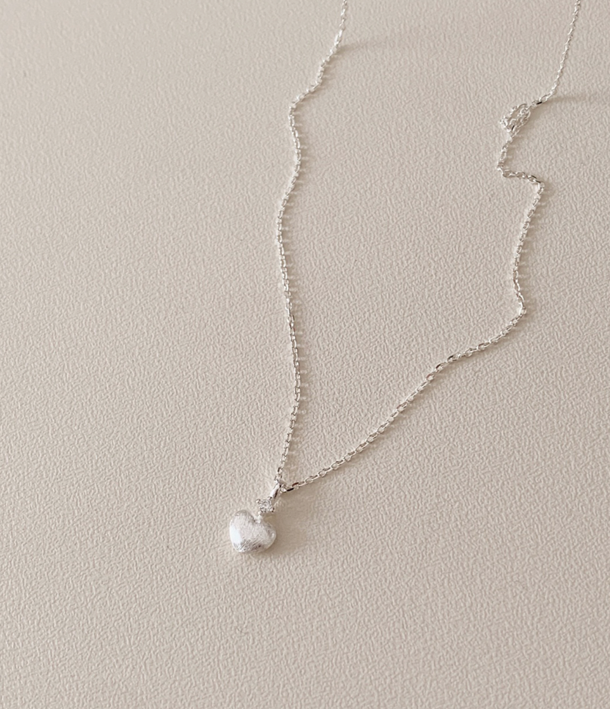 [SOYE PI-NE] Matt Cubic Heart Silver Necklace