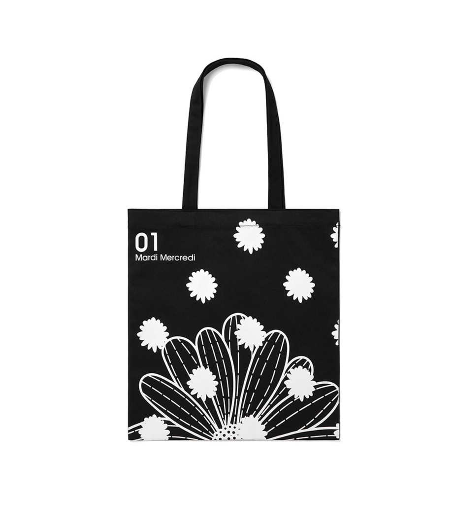 [MARDI MERCREDI] CANVAS BAG FLOWER DOTS BLACK WHITE