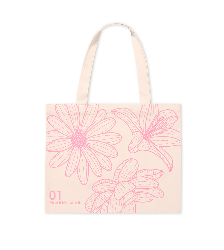 [MARDI MERCREDI] CANVAS BAG TRIPLE FLOWER CREAM LIGHTPINK