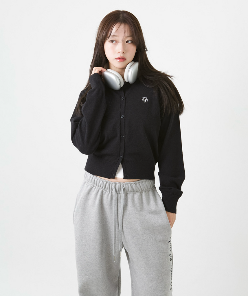 [muahmuah] Stitch Logo Round Cardigan [Black]