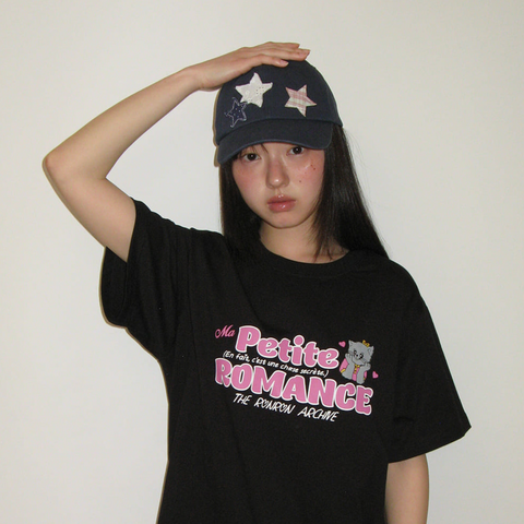 [RONRON] STAR PATCH MIXED APPLIQUE APPLIQUE T SHIRT CHARCOAL