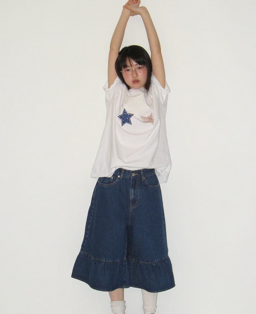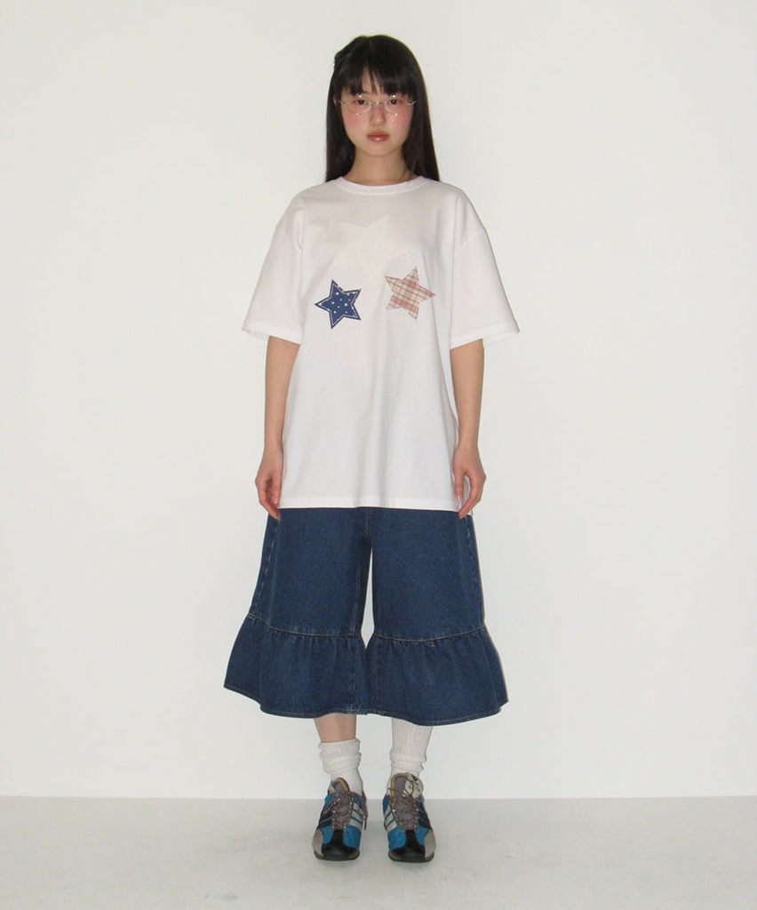 [RONRON] STAR PATCH MIXED APPLIQUE APPLIQUE T SHIRT WHITE