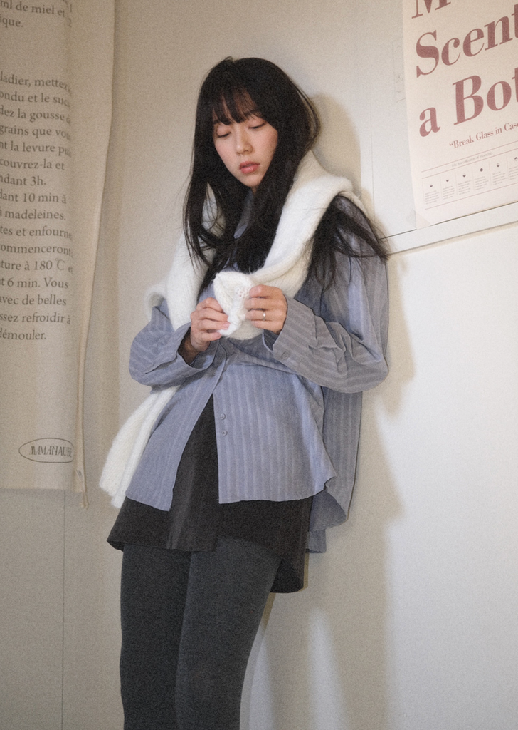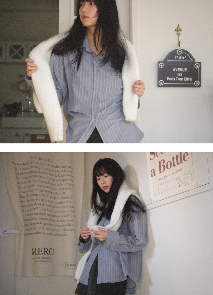 [WITHBLOOM] Letter Stripe Jacquard Shirt Sora