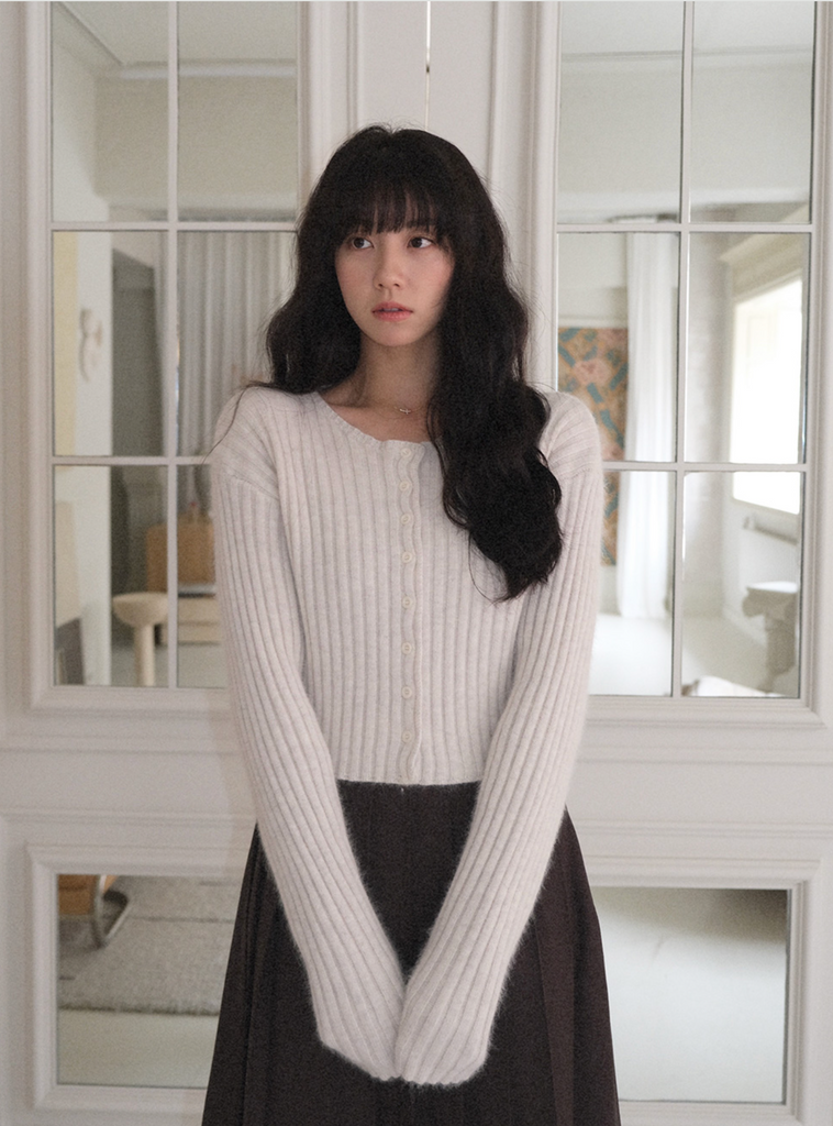 [WITHBLOOM] Raccoon Wool Golgi Crop Cardigan Ivory