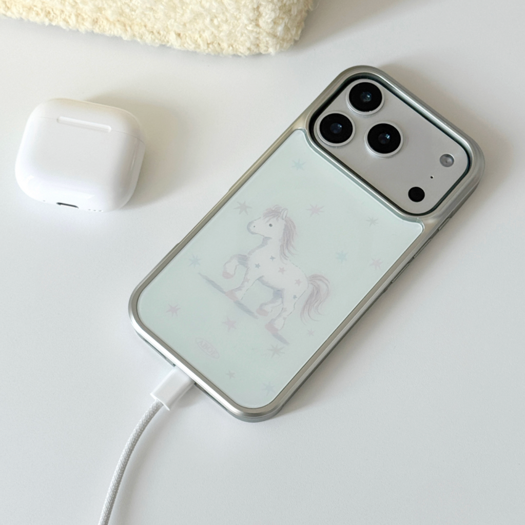 [ABOE] MINT STAR PONY Silver Bumper Phone Case