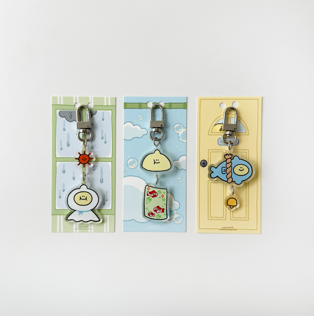 (1) 晴天娃娃 / (2) 風鈴 / (3) 木魚