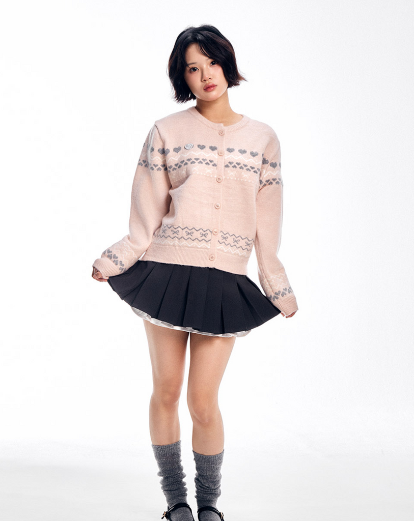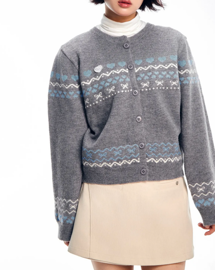 [ADORE BELLE] Wappen Heart Pattern Cardigan (4Colours)