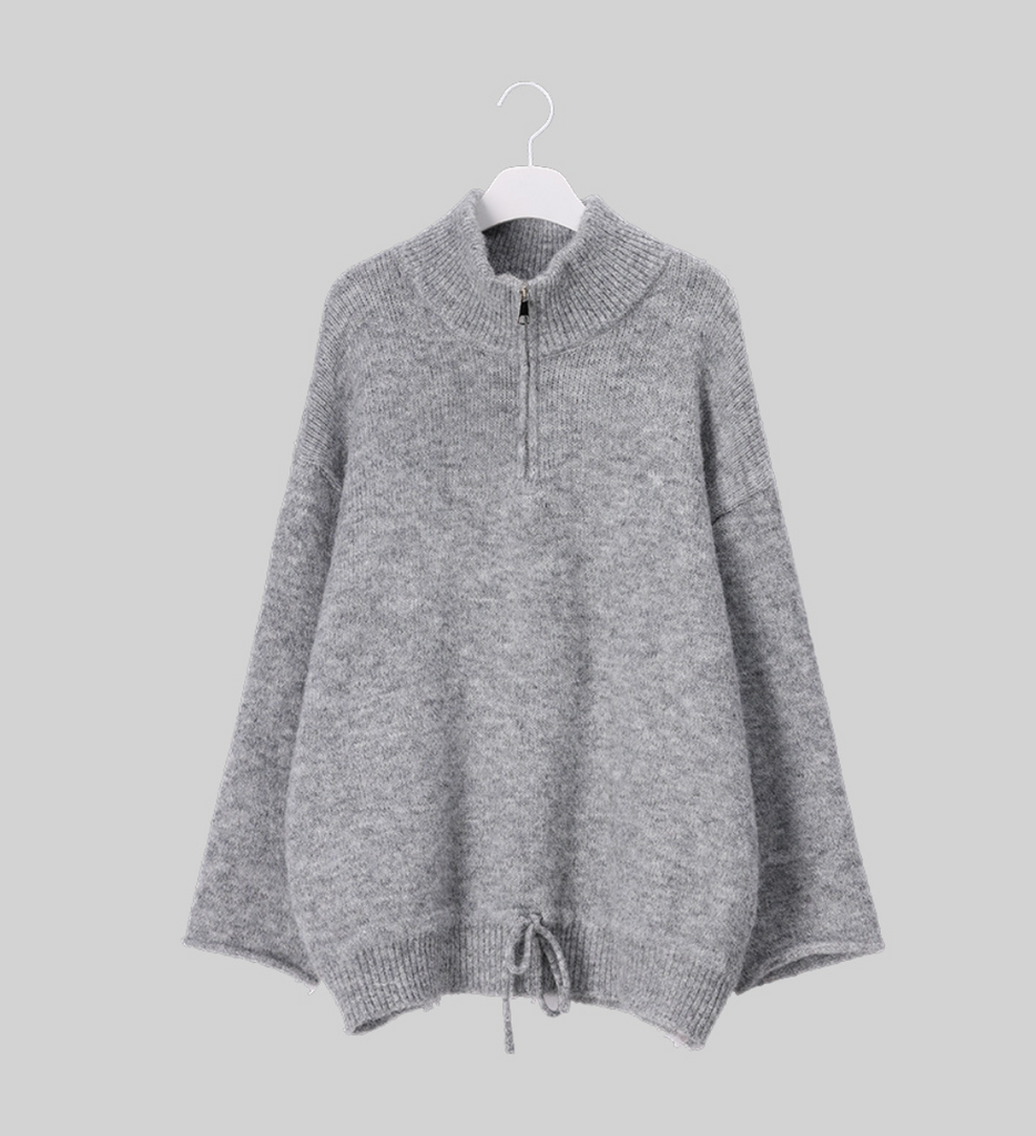 [FRENCHCHIC] Hem String Half Zip-Up Wool Knitwear