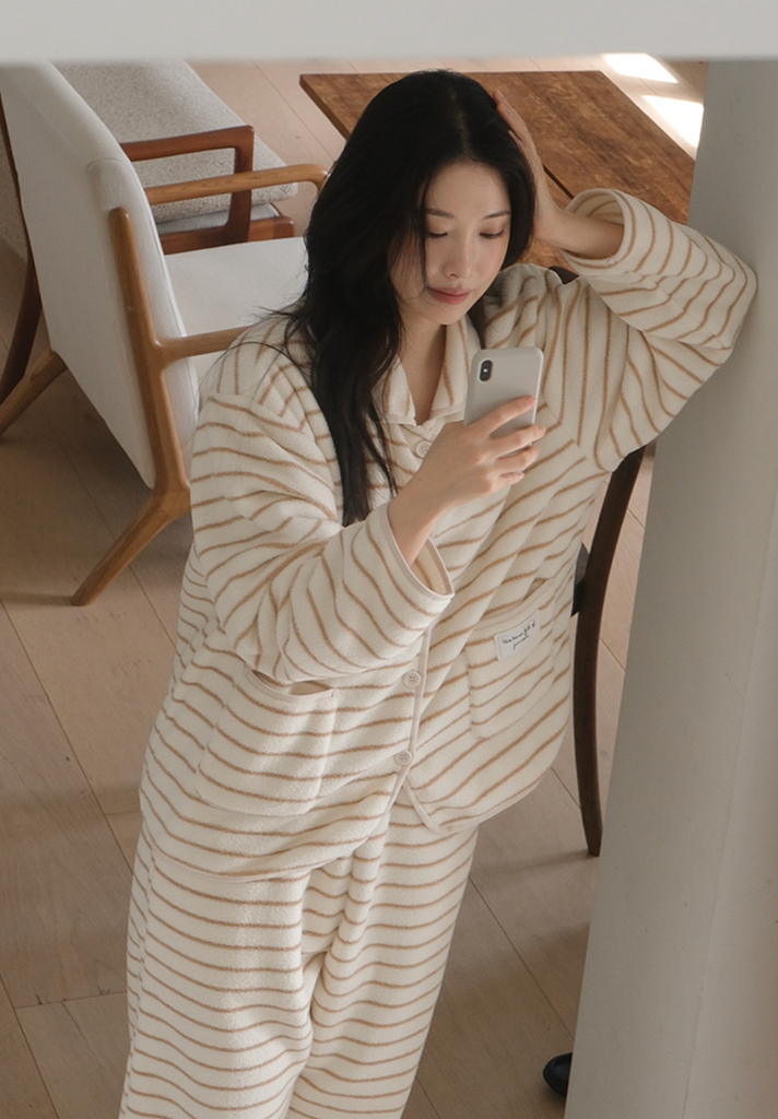 [Juuneedu] Jeu House Strip Sleep Jogger Pajama Set