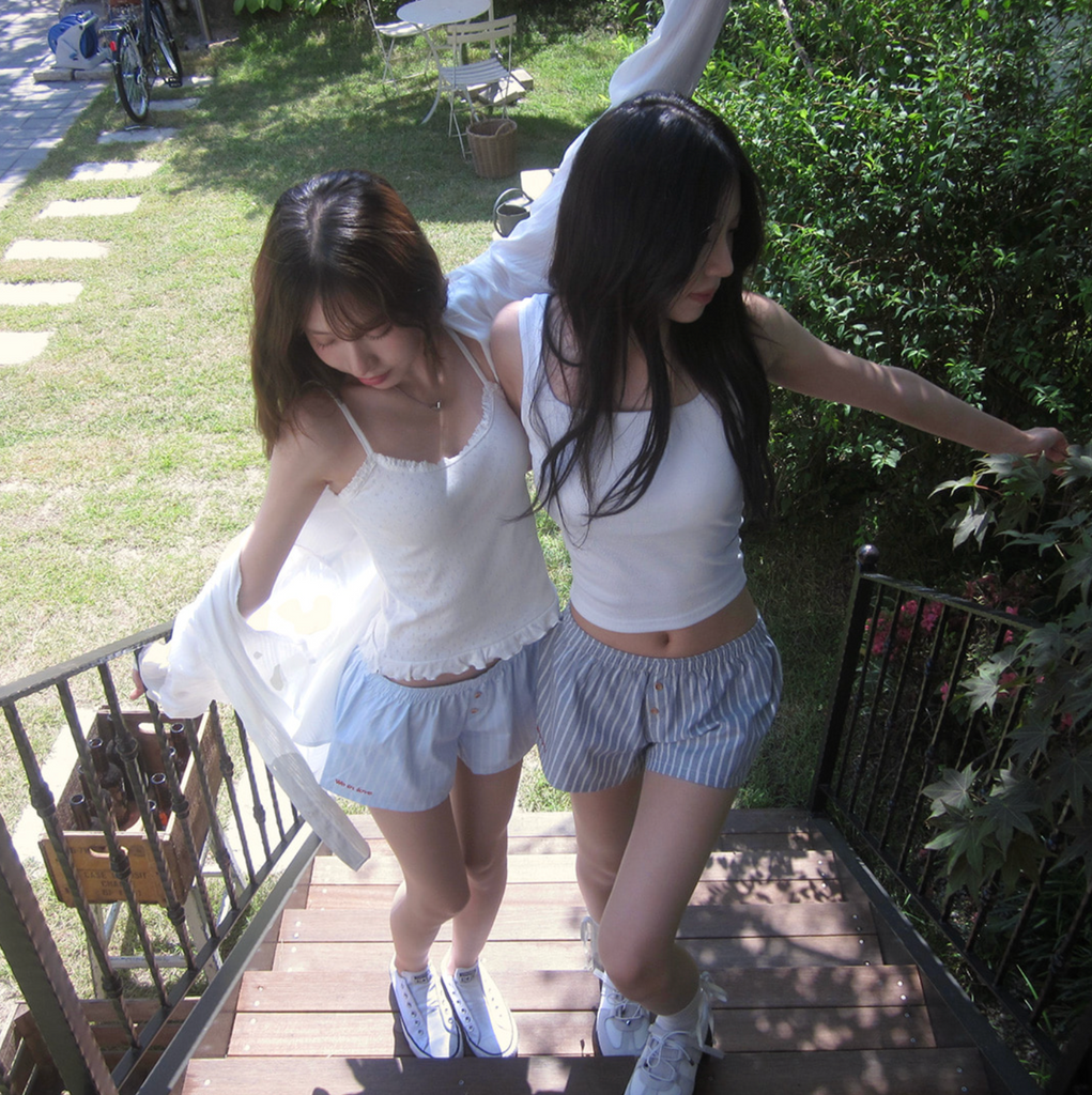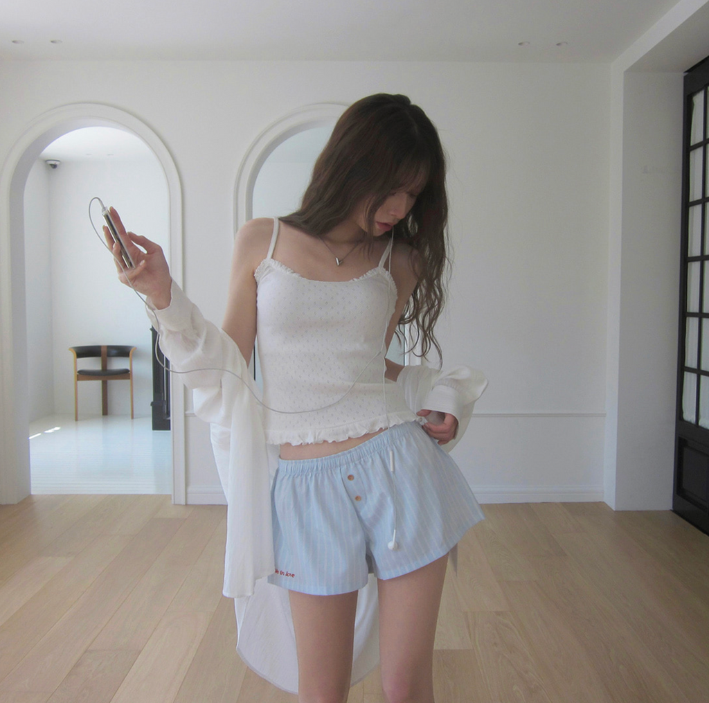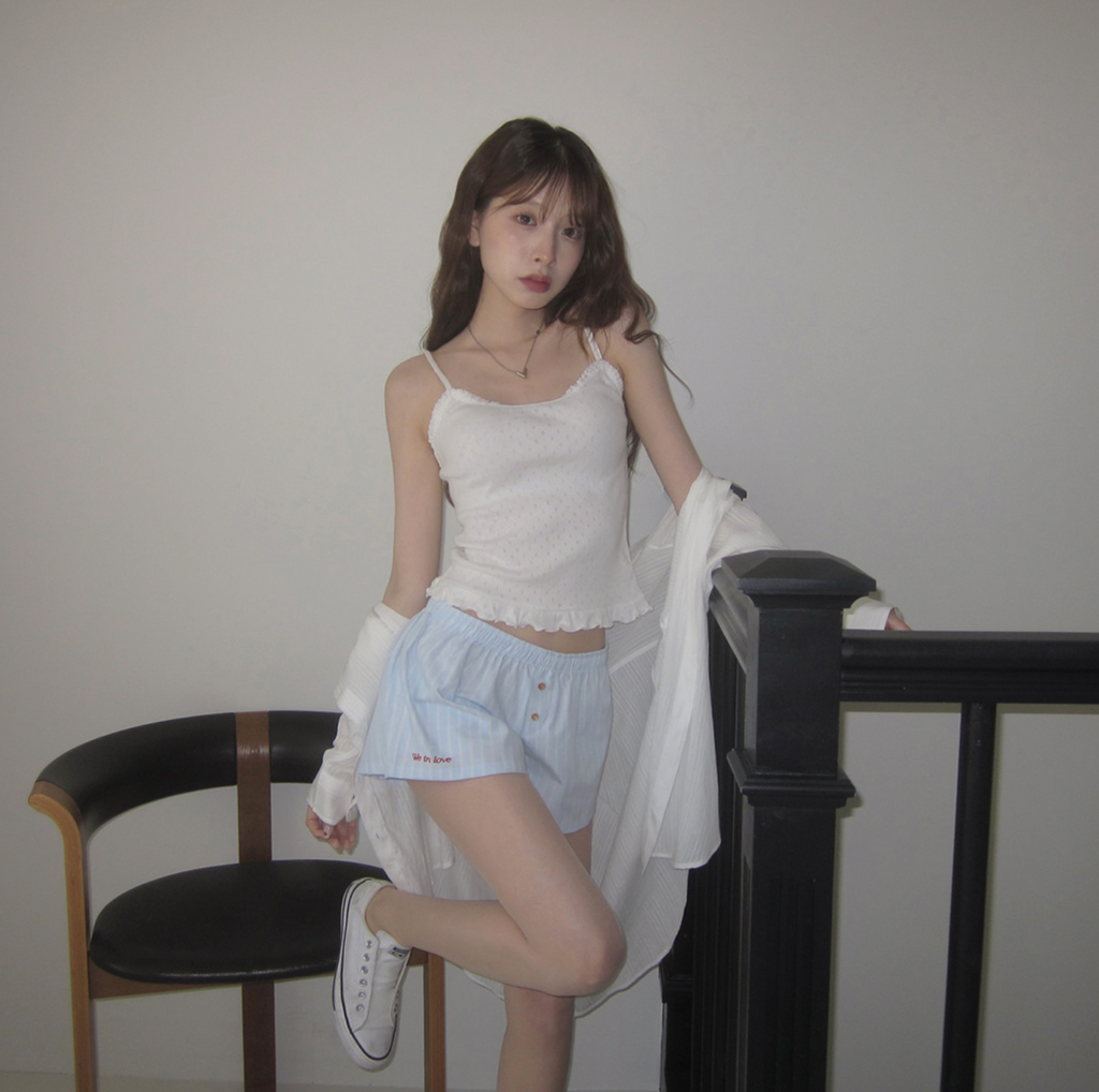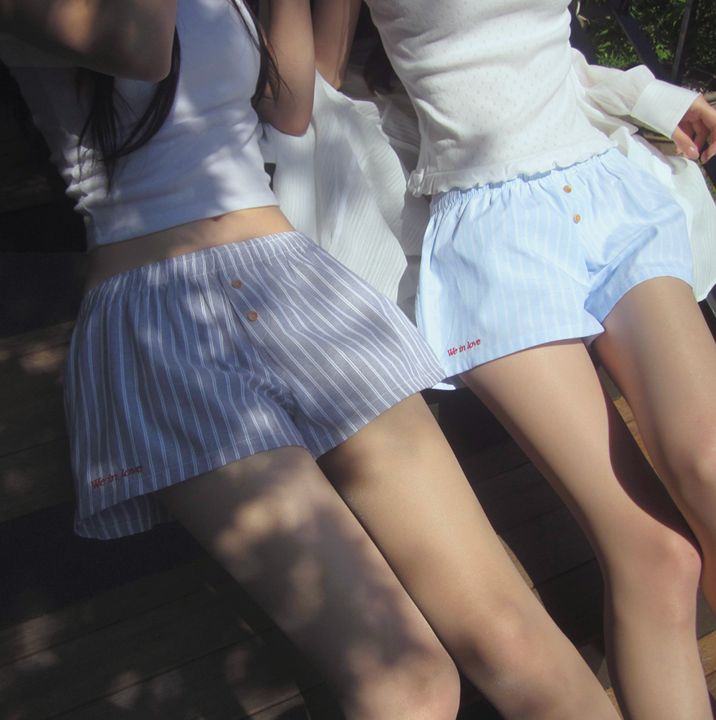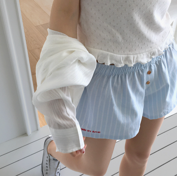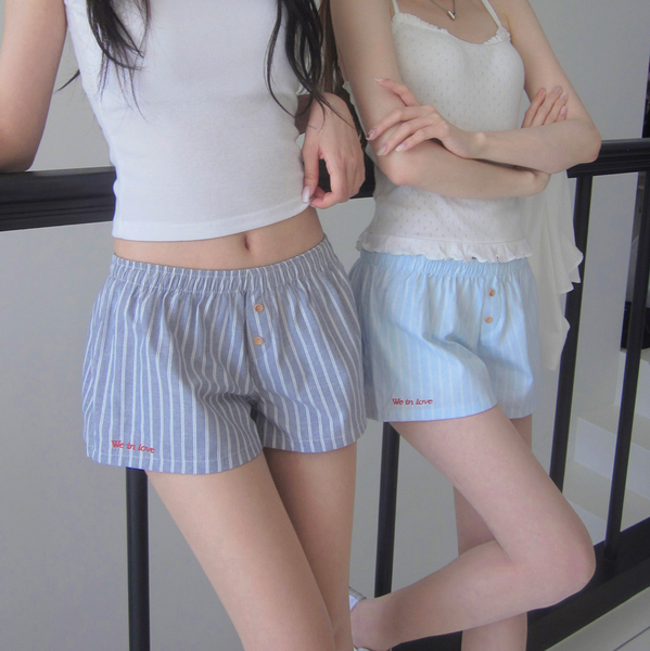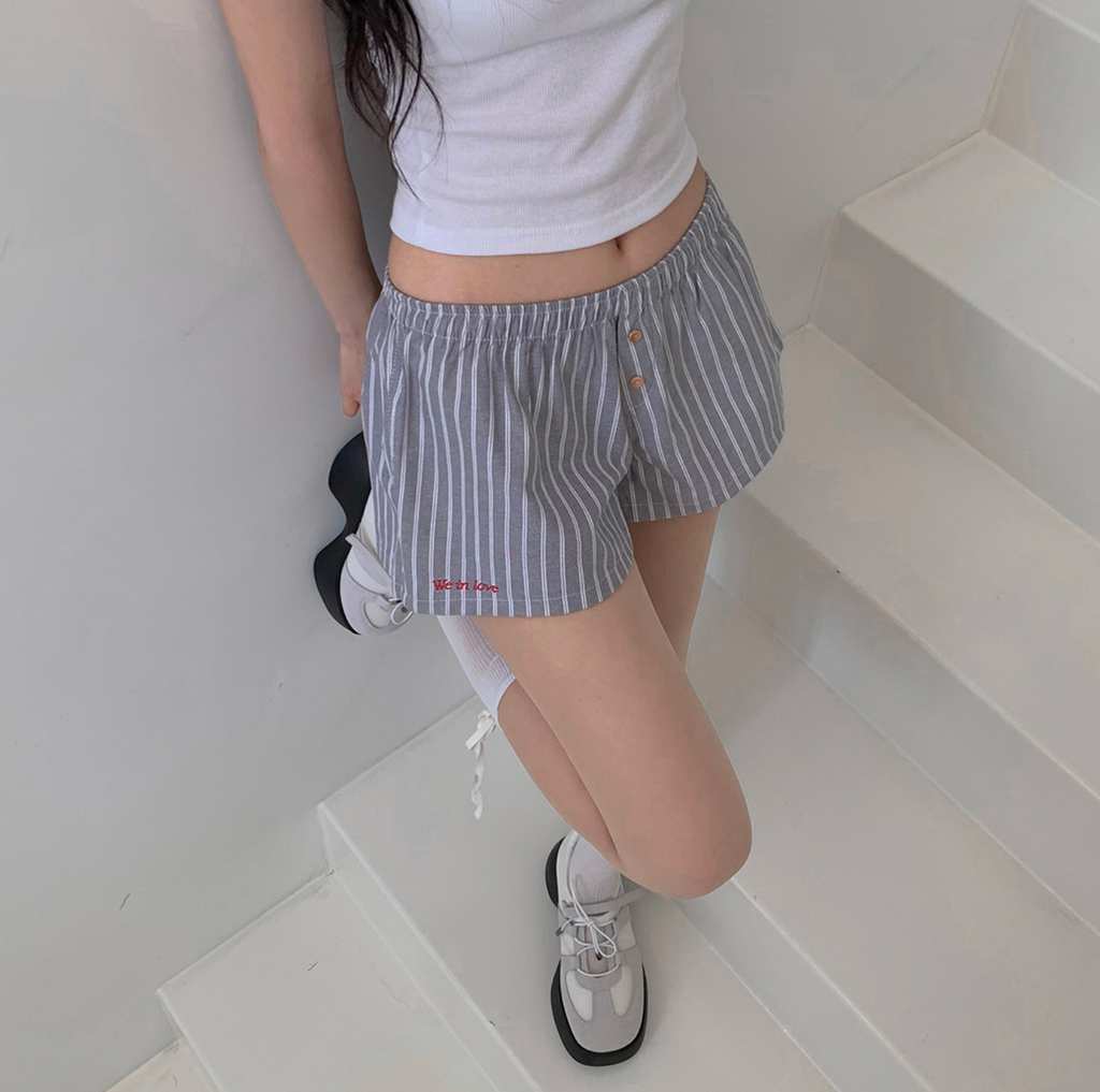 [CREAM CHEESE] Love Letter Stripe Shorts Summer Pants