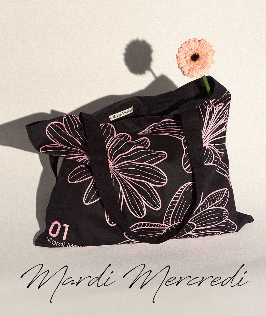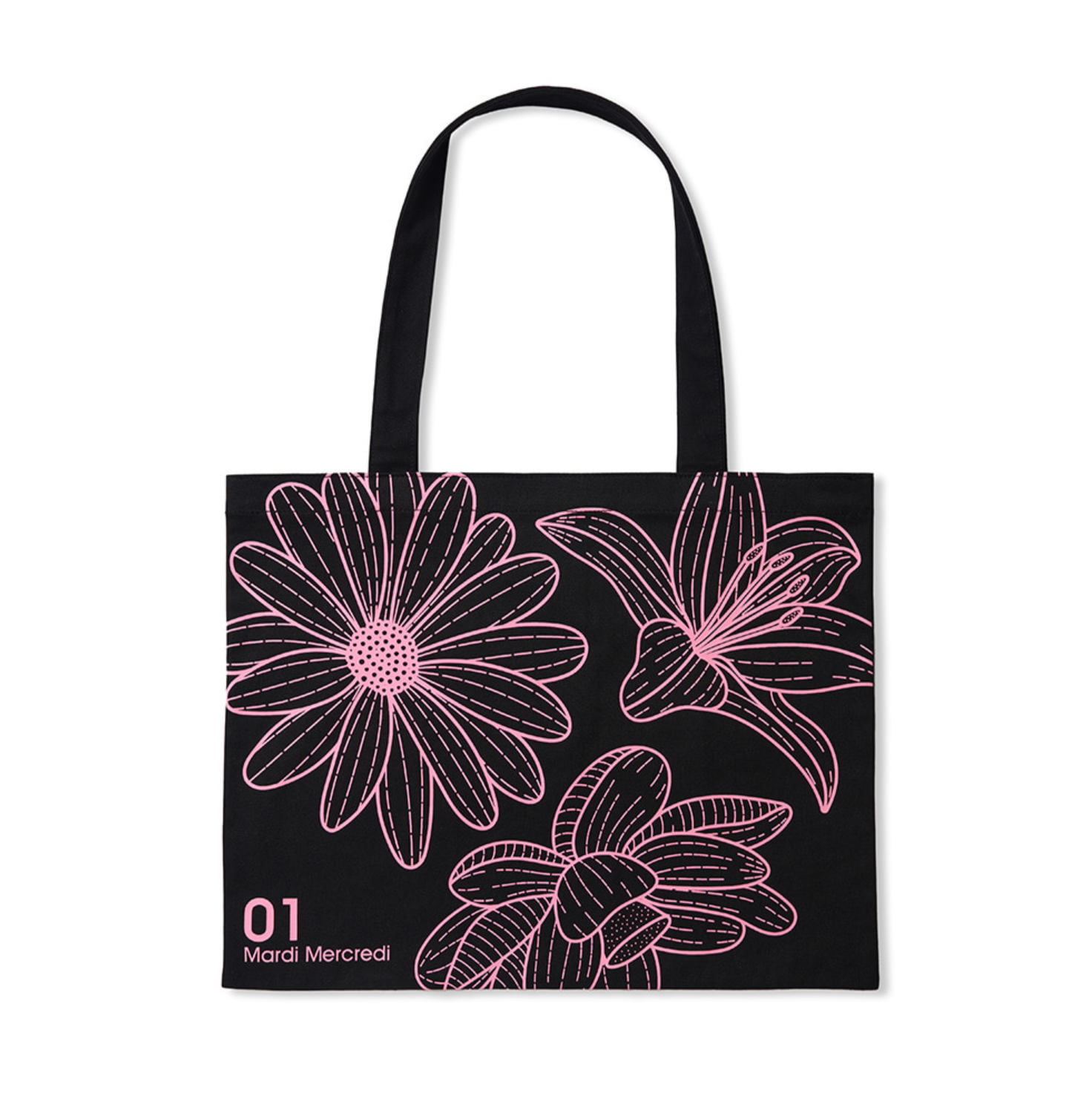 [MARDI MERCREDI] CANVAS BAG TRIPLE FLOWER BLACK PINK