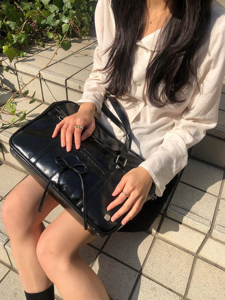 [ovuni] CLASSIC RIBBON SCHOOLBAG BLACK