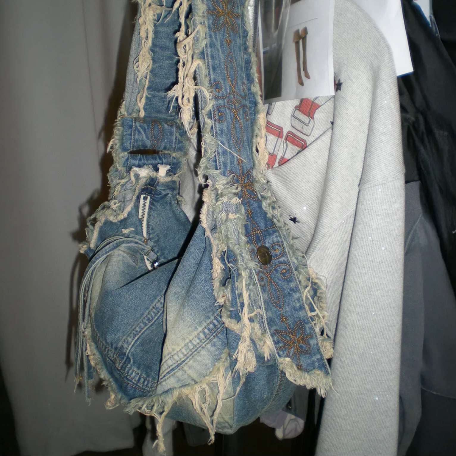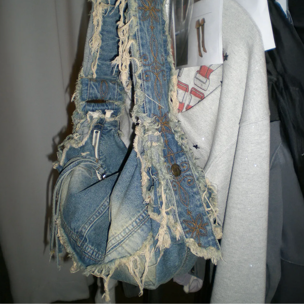 [SCULPTOR] Destroyed Denim Duffel Bag Vintage Blue