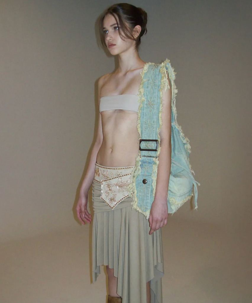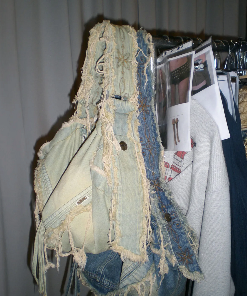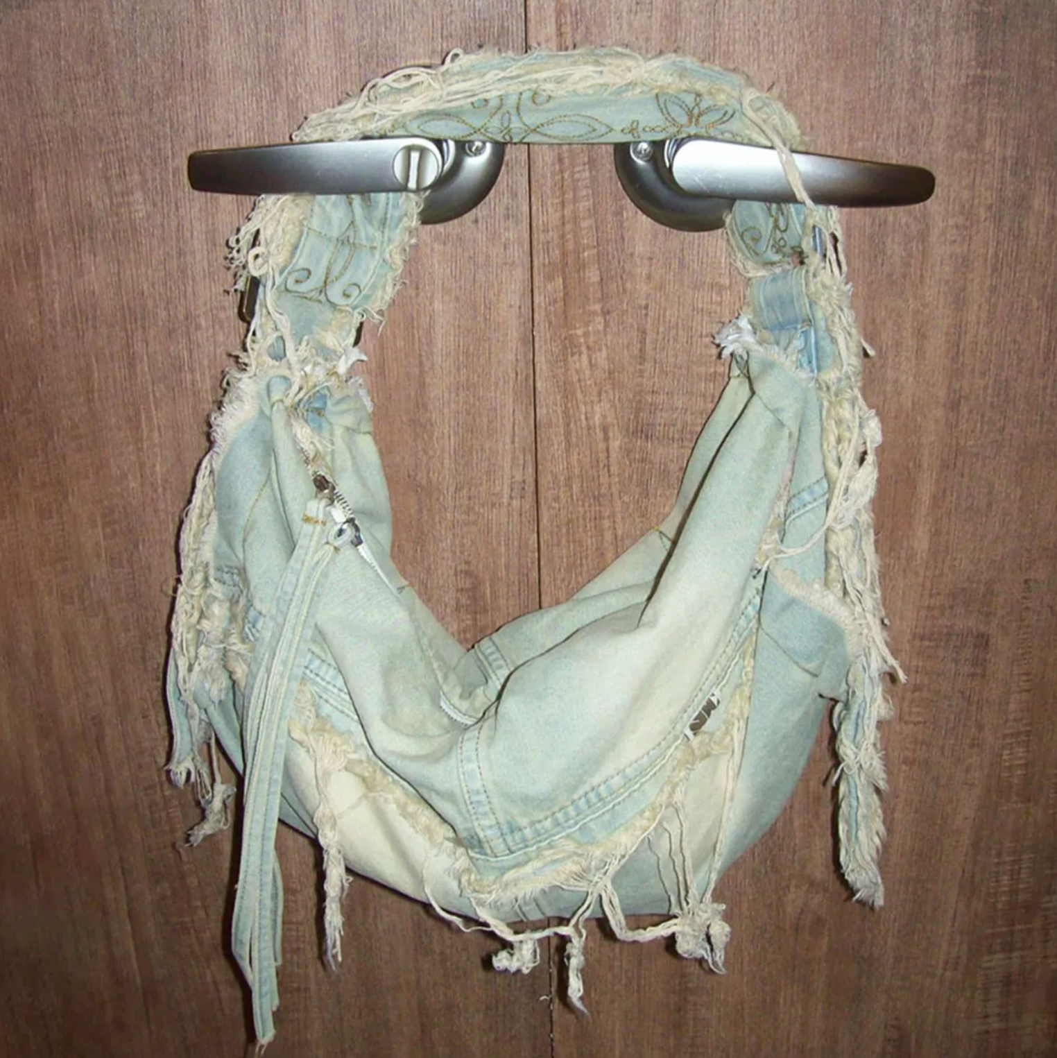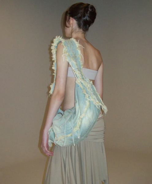 [SCULPTOR] Destroyed Denim Duffel Bag Vintage Ice