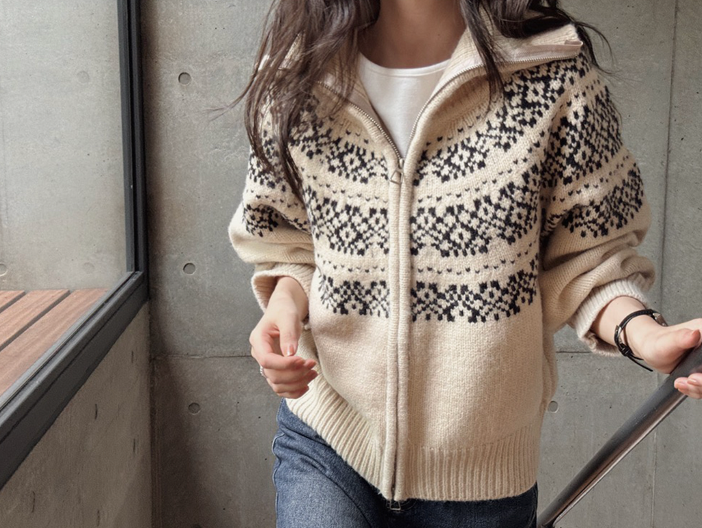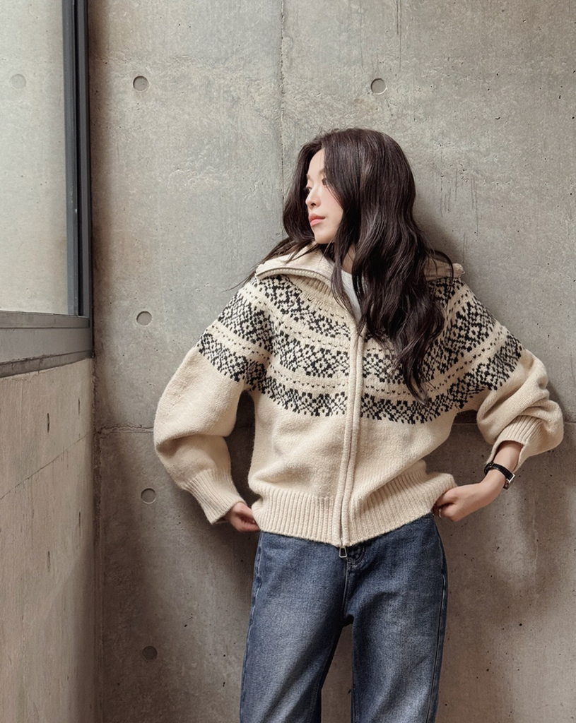 [SLOWAND] ONLYSLOW Nordic Thick High-Neck Knitwear Zip-Up