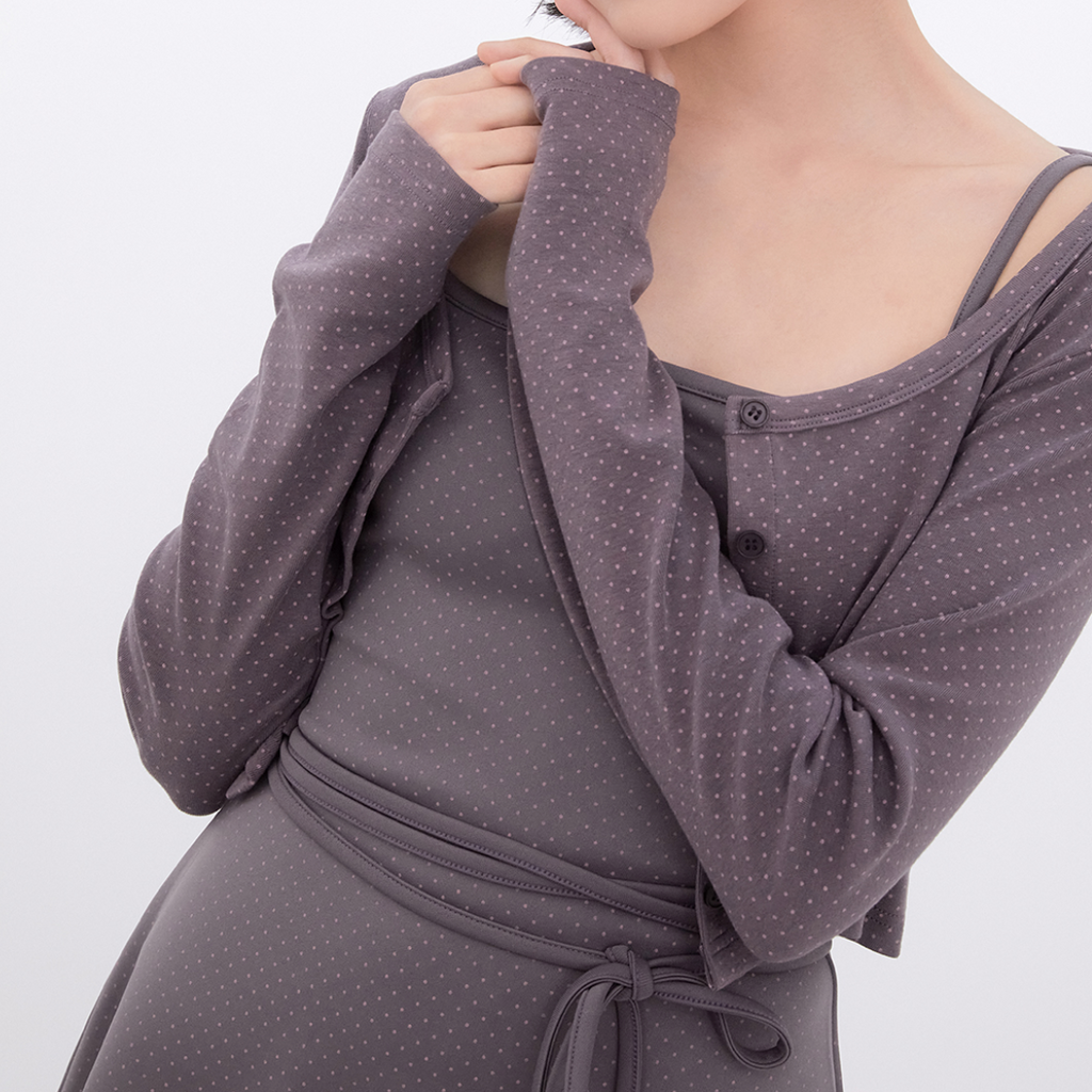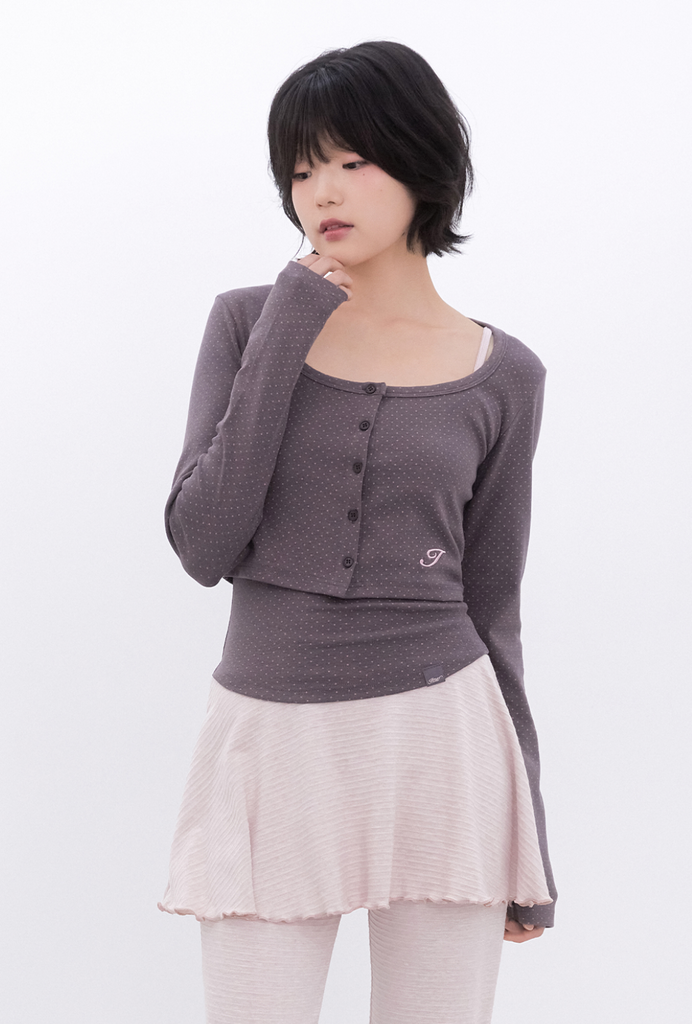 [Inner museum] Dot Button Crop Cardigan (COCOA)