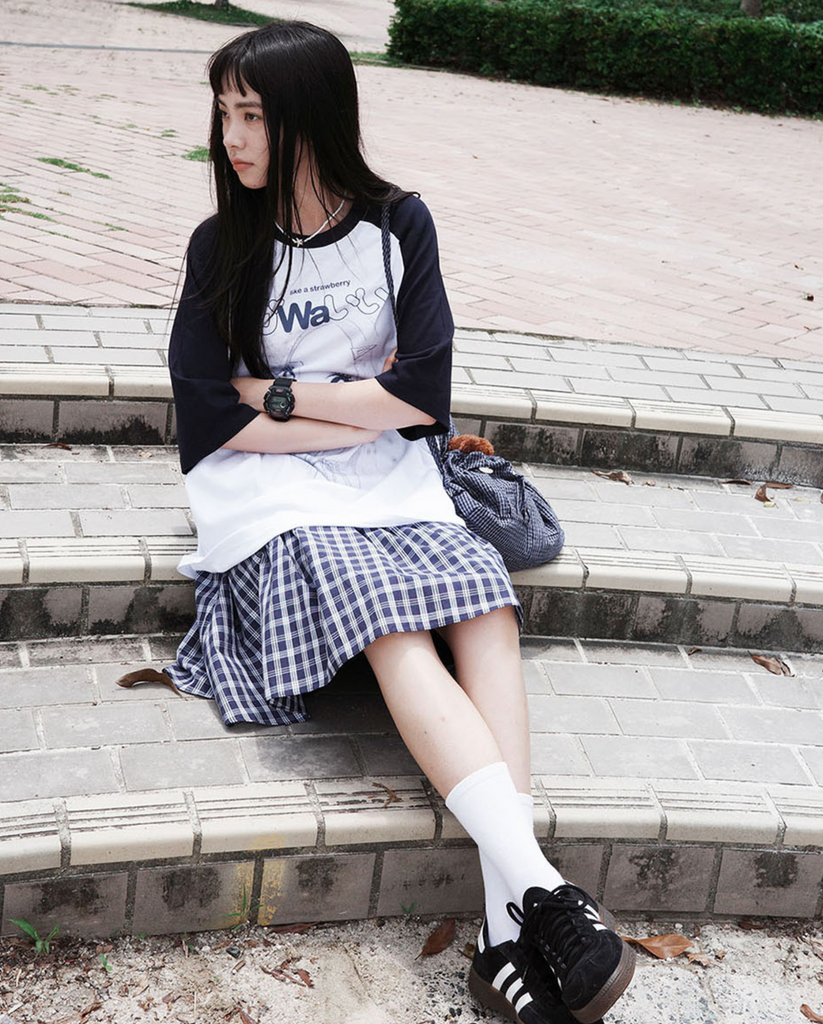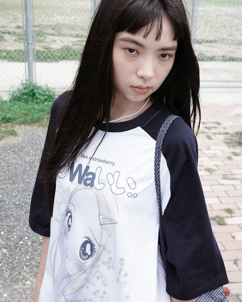[WONDERVISITOR] KAWAii HEESU Overfit Raglan T-shirt [Navy]
