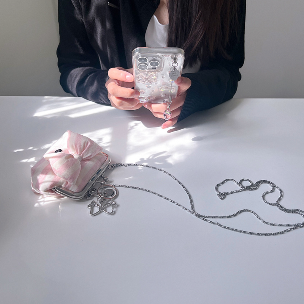 [Peakdrawing] Rose Pink Stripe Ribbon Frame Mini Bag