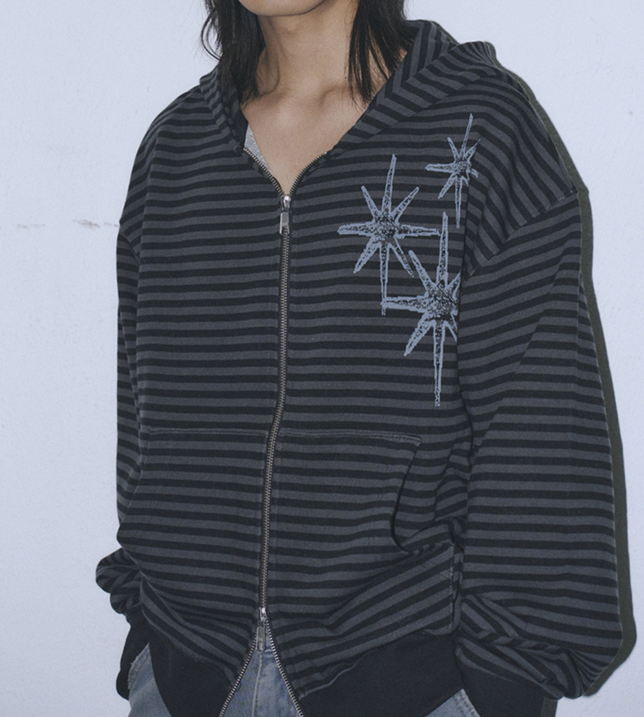 [UNTITLED SEOUL] STARRY NIGHT Small Stripe Hooded Zip-Up Black