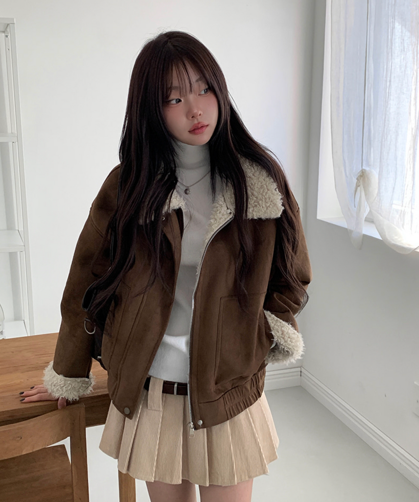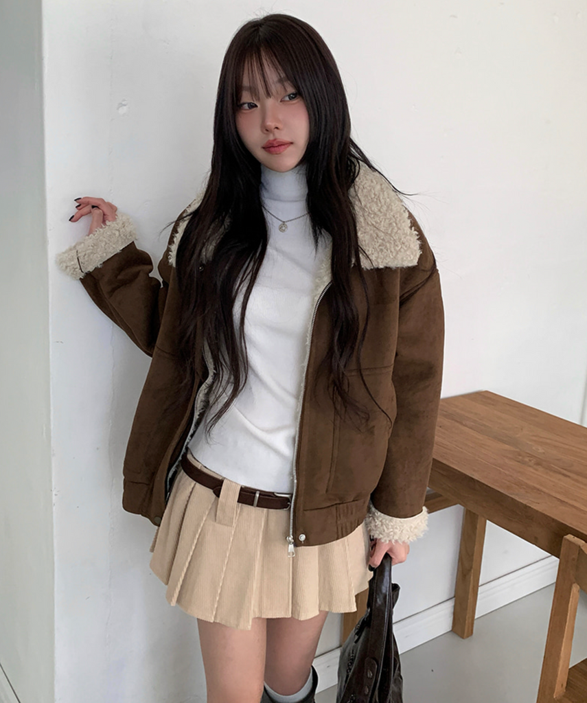 [MODIMOOD] Fur Lining Wool Suede Jacket